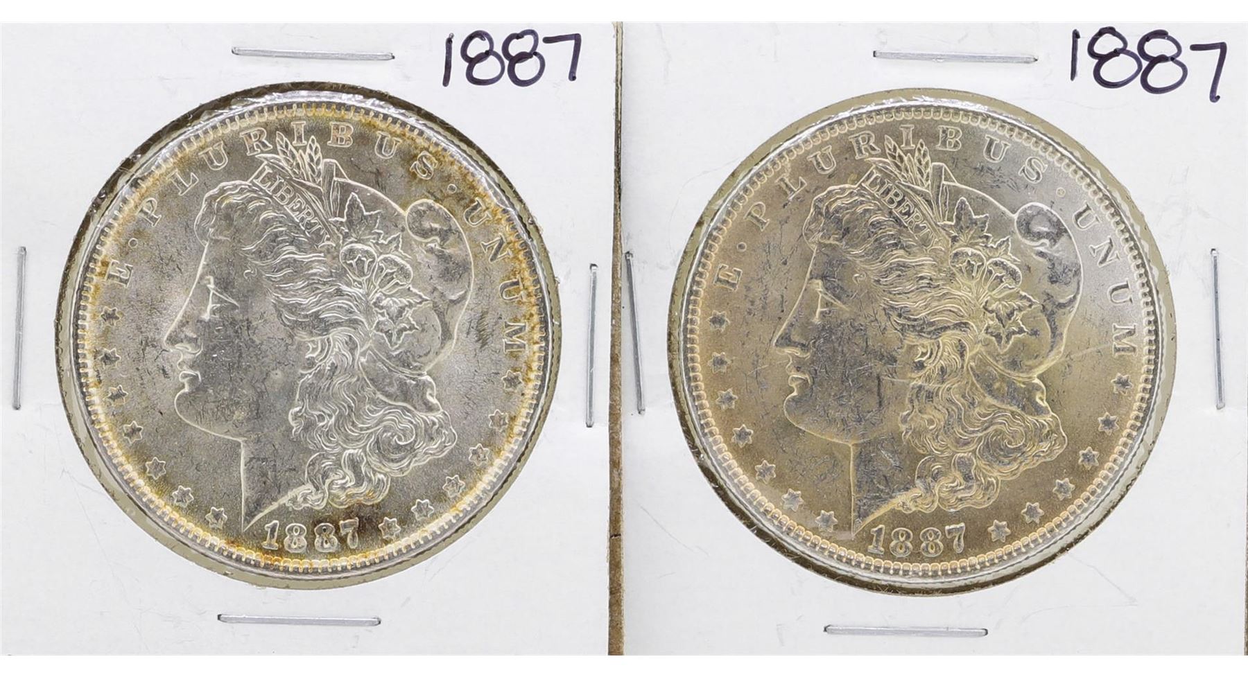 One Lot of (2) 1887 $1 Morgan Silver Dollar Coins.