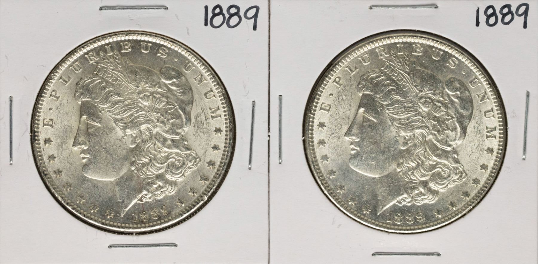 One Lot of (2) 1889 $1 Morgan Silver Dollar Coins.