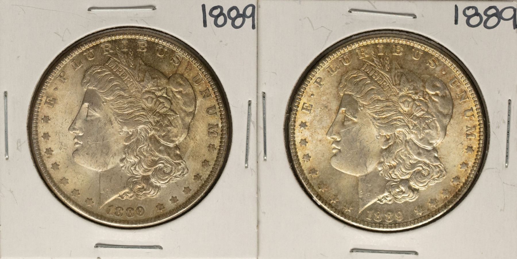 One Lot of (2) 1889 $1 Morgan Silver Dollar Coins.