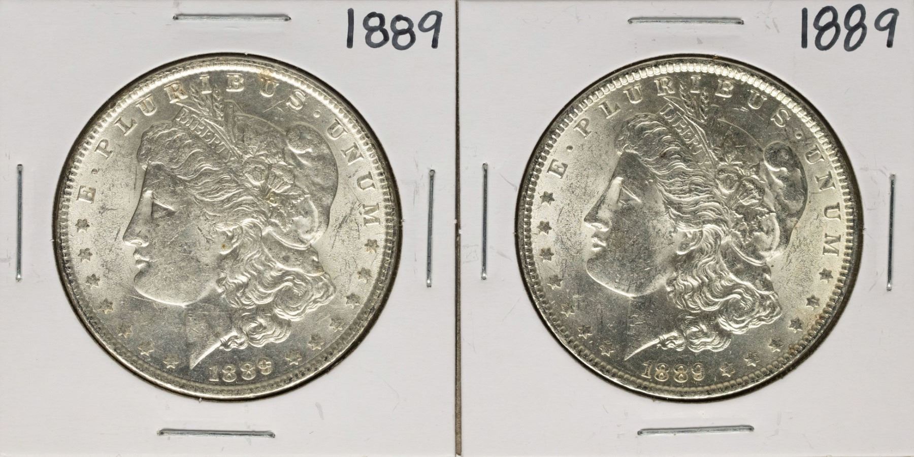 One Lot of (2) 1889 $1 Morgan Silver Dollar Coins.