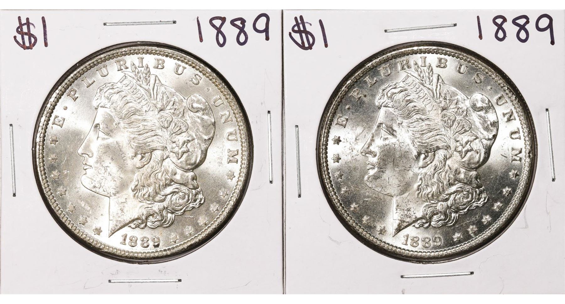 One Lot of (2) 1889 $1 Morgan Silver Dollar Coins.
