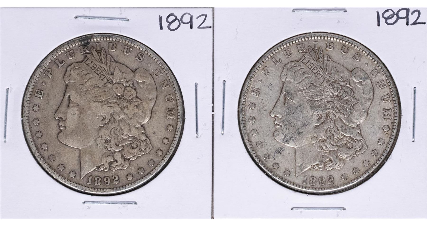 One Lot of (2) 1892 $1 Morgan Silver Dollar Coins.