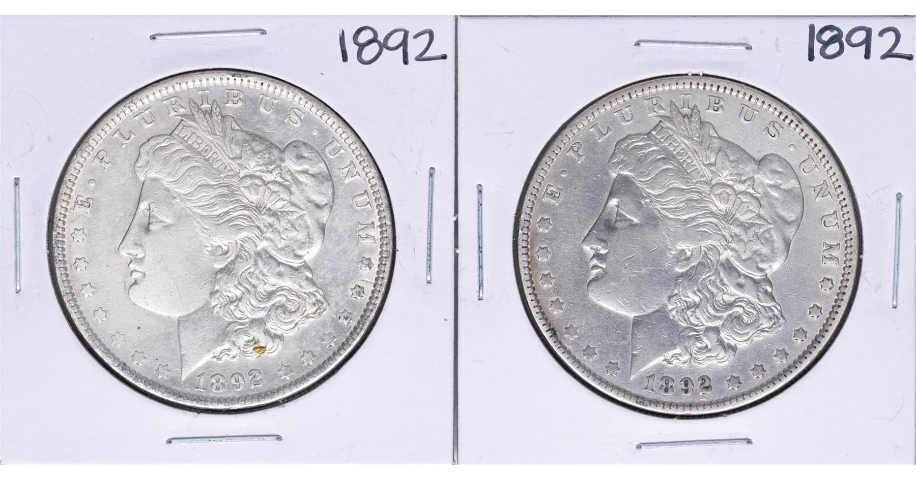 One Lot of (2) 1892 $1 Morgan Silver Dollar Coins.