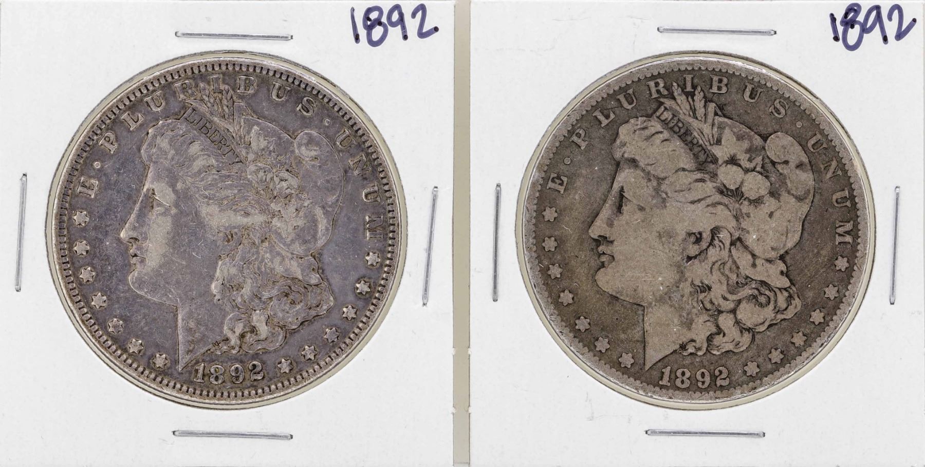 One Lot of (2) 1892 $1 Morgan Silver Dollar Coins.
