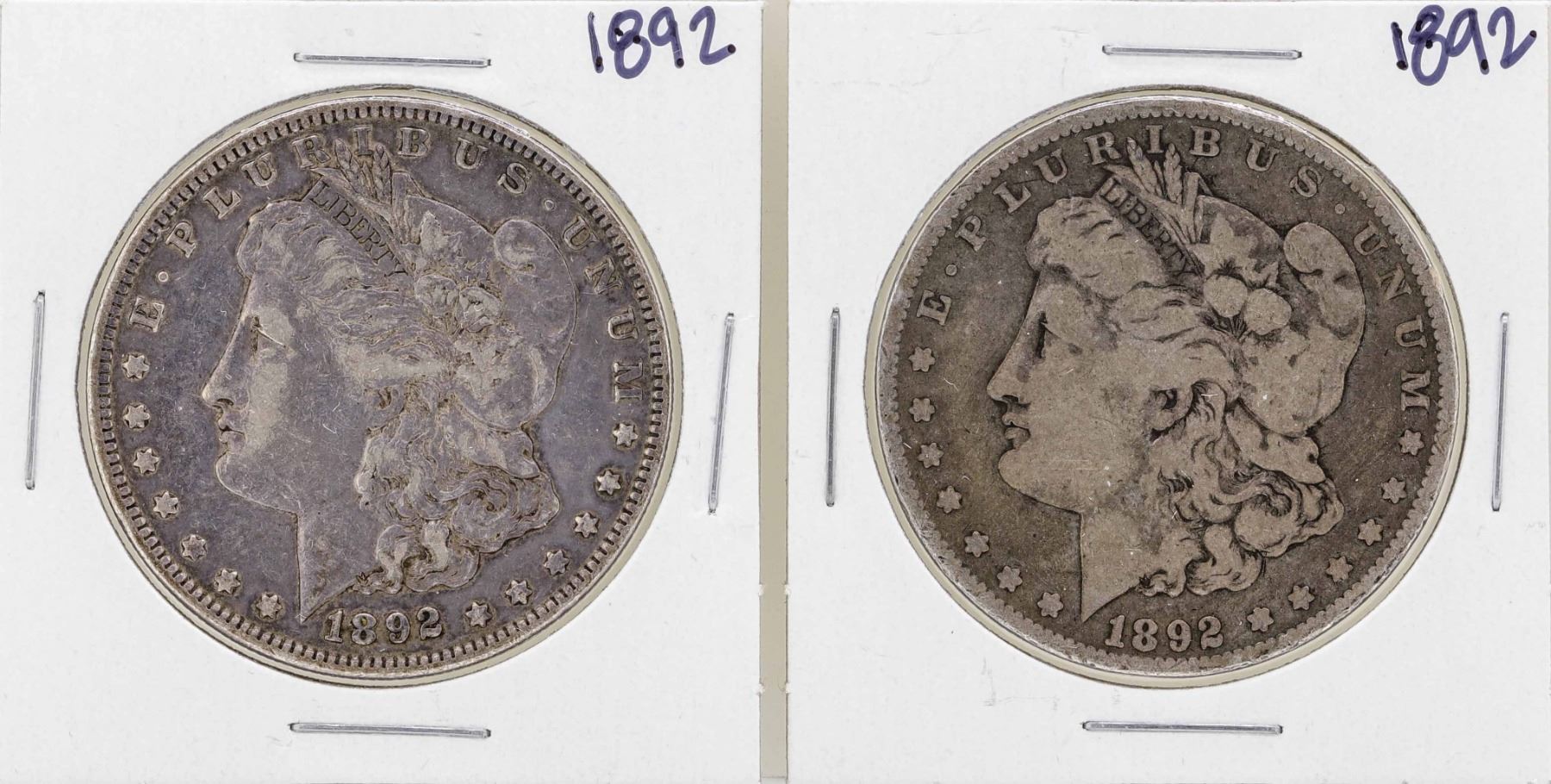 One Lot of (2) 1892 $1 Morgan Silver Dollar Coins.