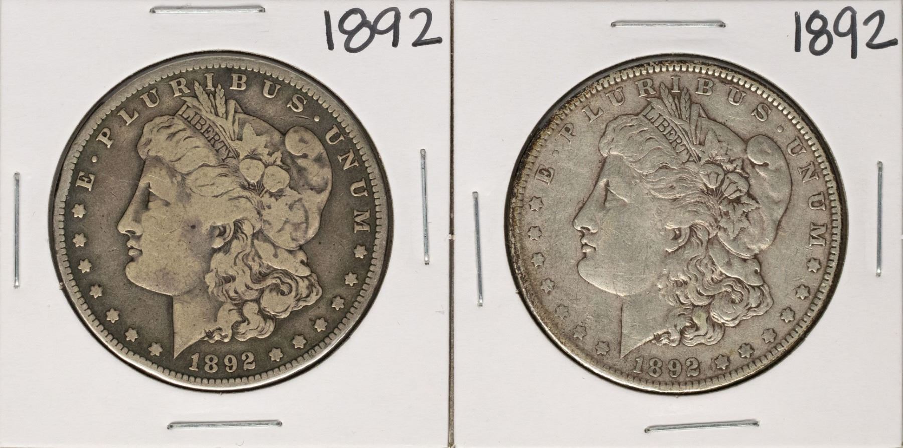 One Lot of (2) 1892 $1 Morgan Silver Dollar Coins.