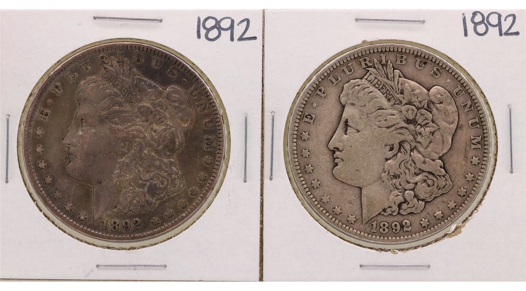 One Lot of (2) 1892 $1 Morgan Silver Dollar Coins.