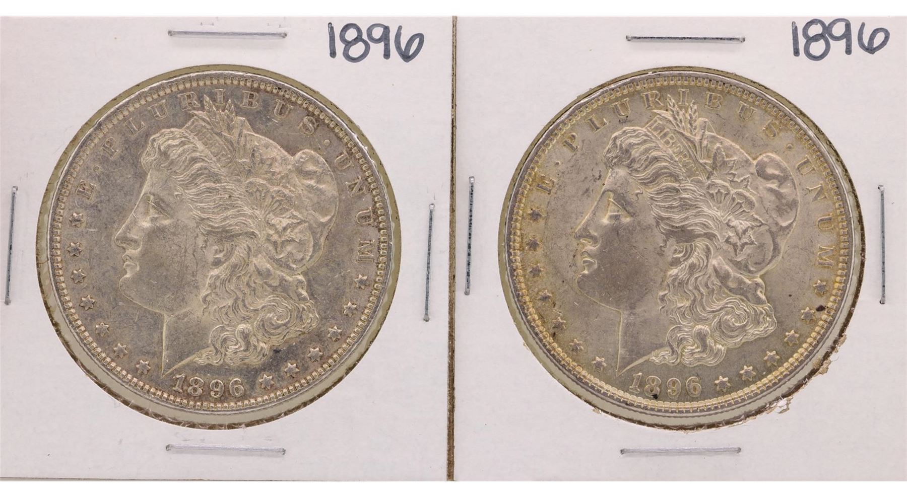 One Lot of (2) 1896 $1 Morgan Silver Dollar Coins.
