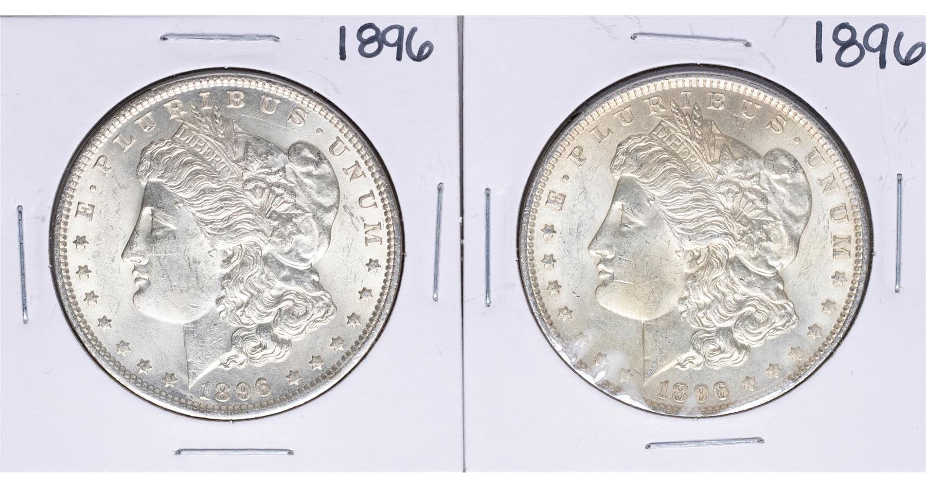 One Lot of (2) 1896 $1 Morgan Silver Dollar Coins.
