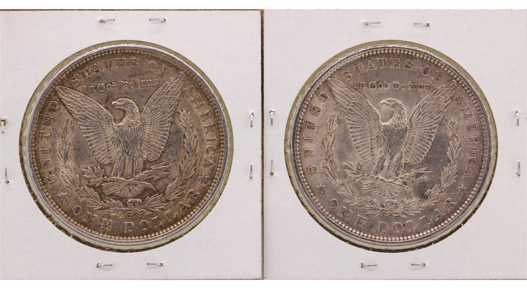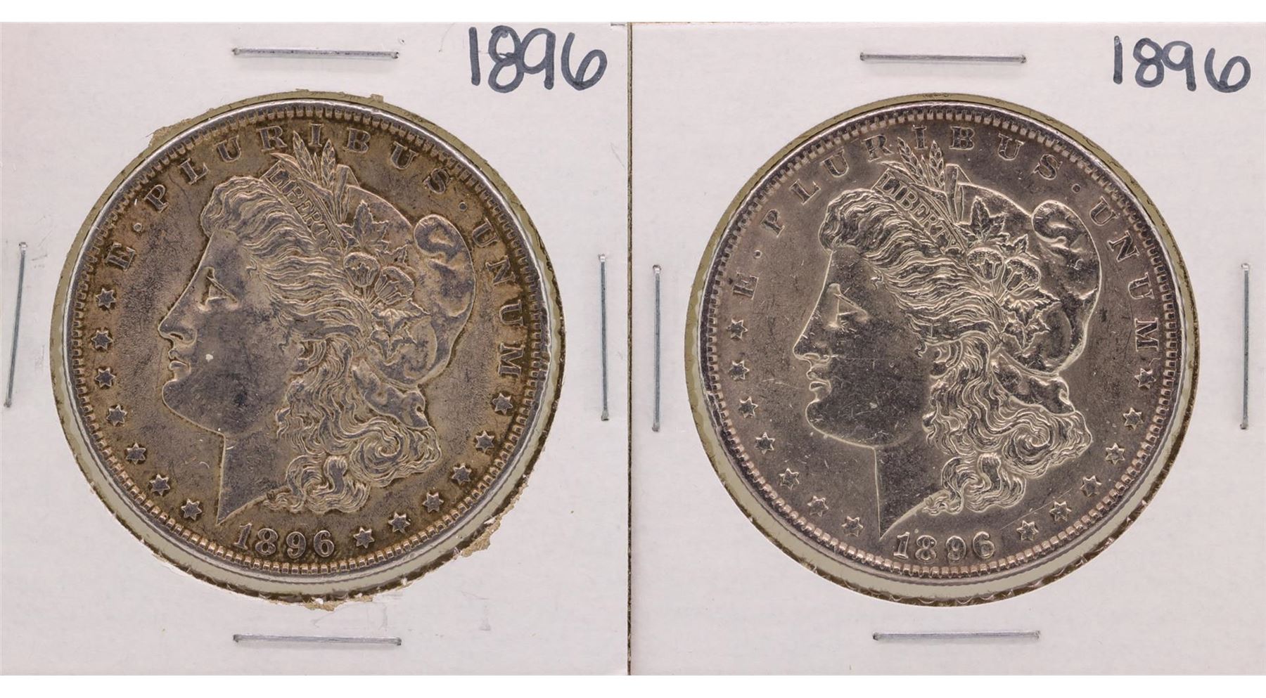 One Lot of (2) 1896 $1 Morgan Silver Dollar Coins.