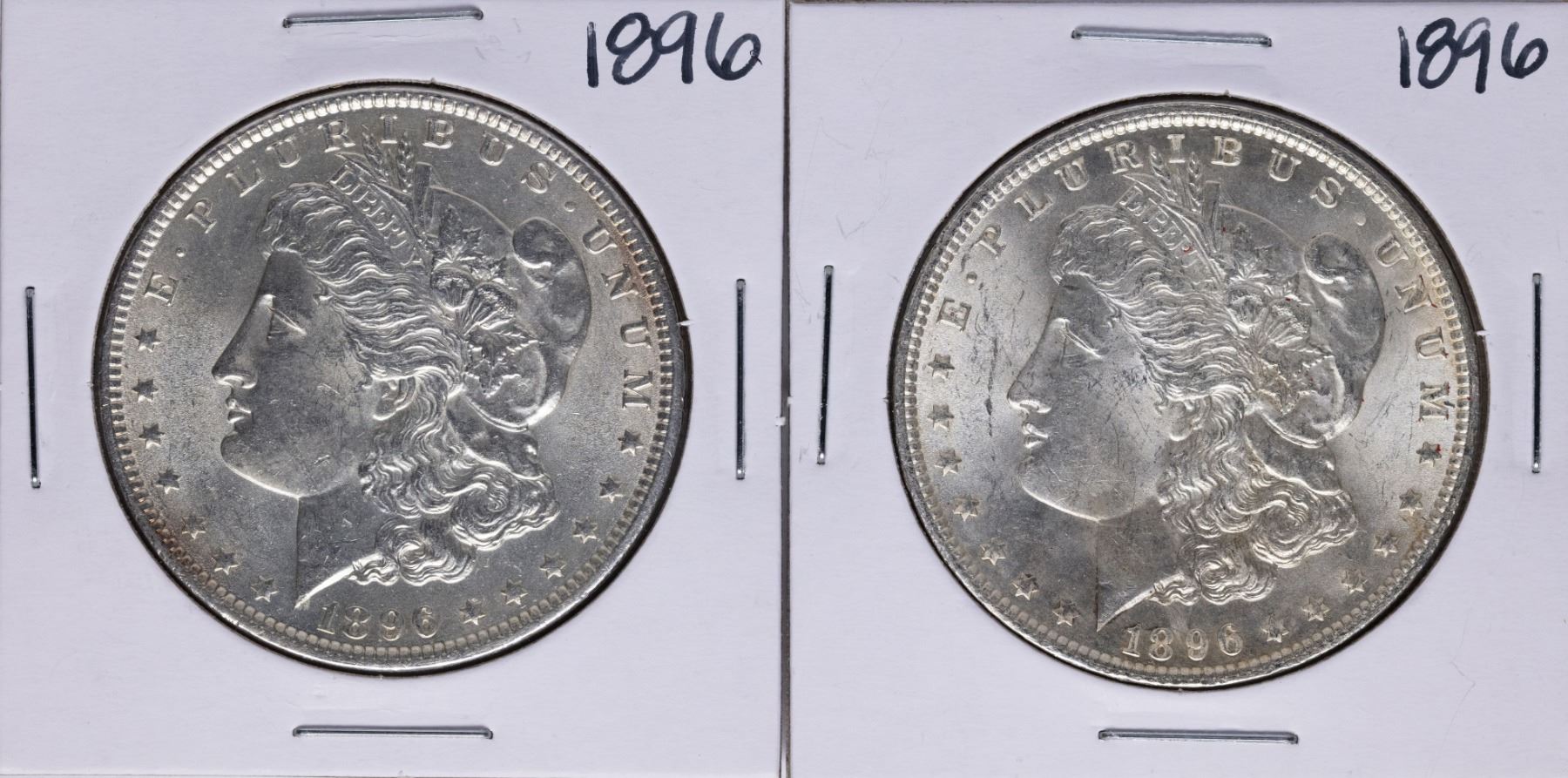 One Lot of (2) 1896 $1 Morgan Silver Dollar Coins.