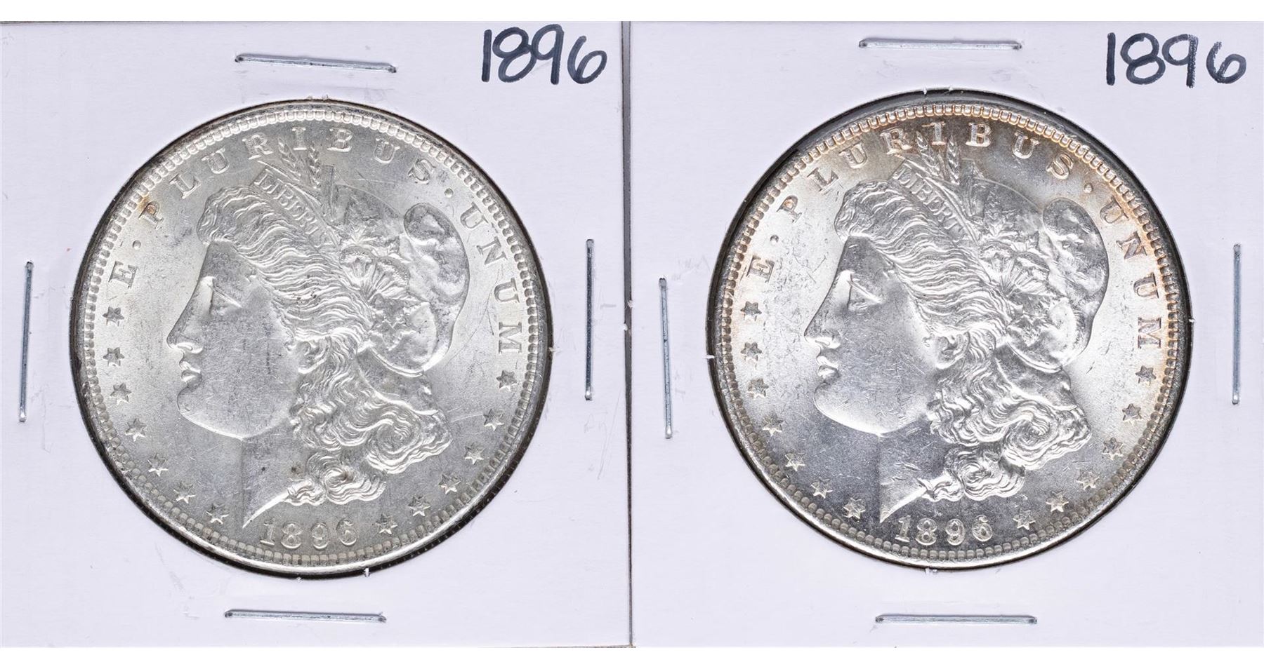 One Lot of (2) 1896 $1 Morgan Silver Dollar Coins.