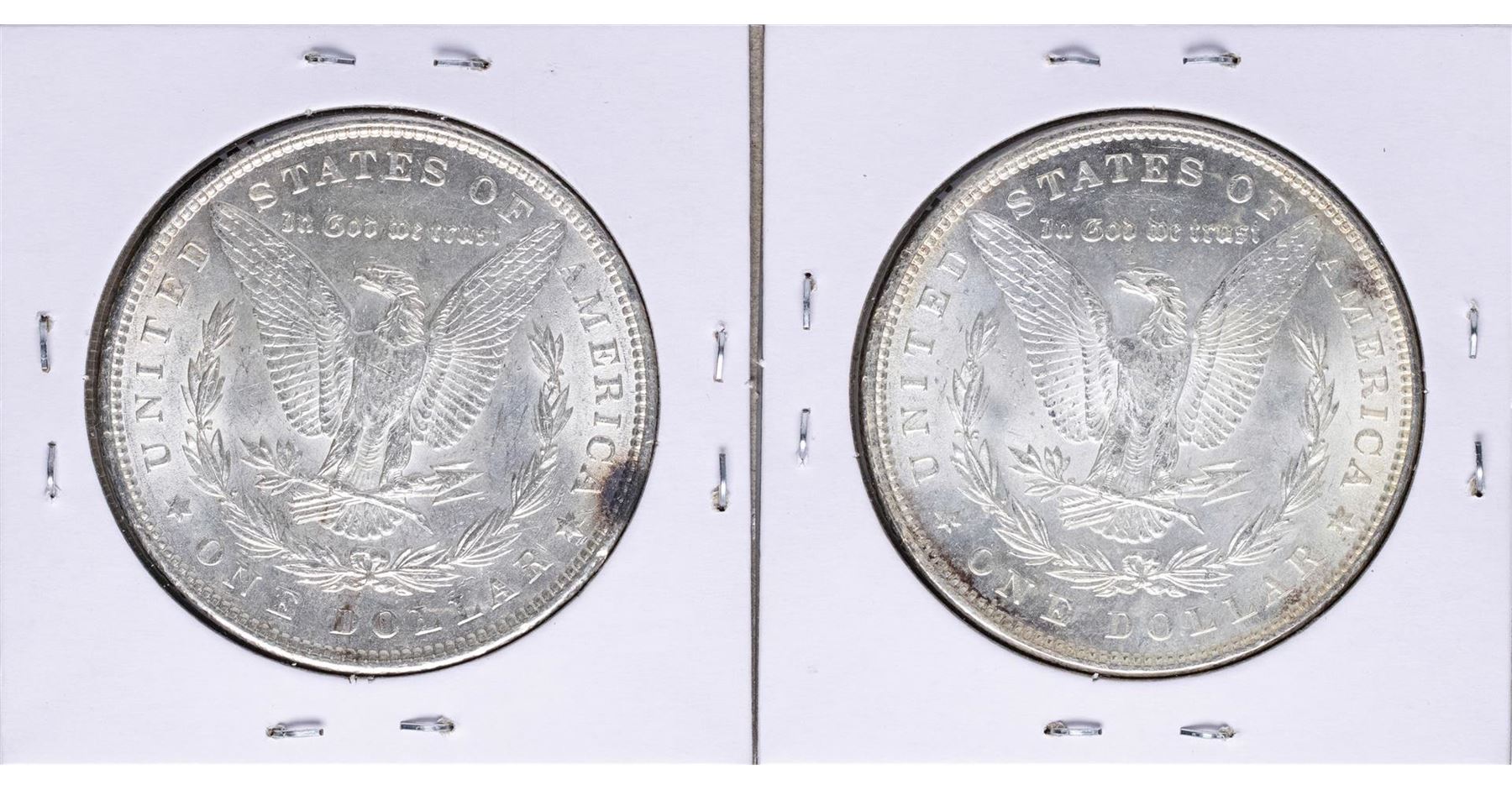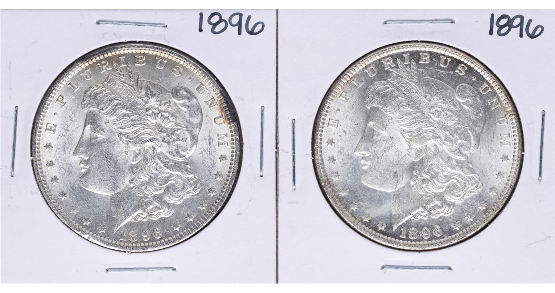 One Lot of (2) 1896 $1 Morgan Silver Dollar Coins.