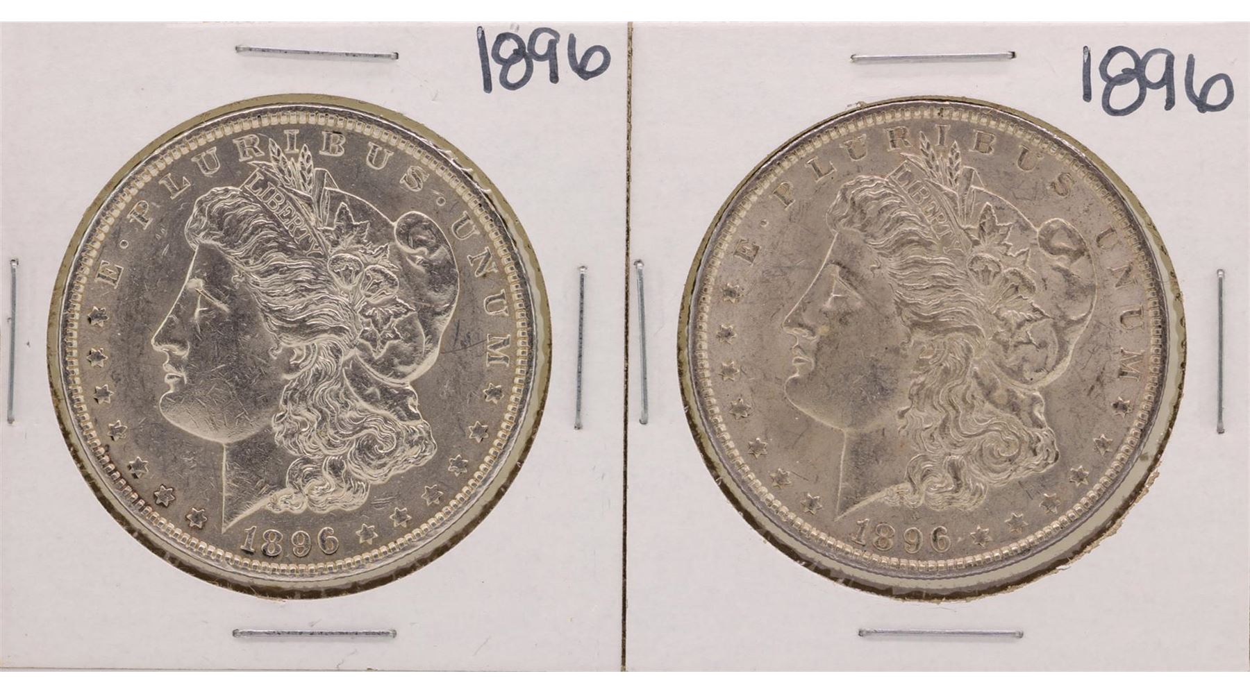 One Lot of (2) 1896 $1 Morgan Silver Dollar Coins.