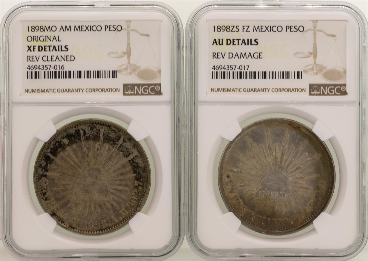 One Lot of (2) 1898 Mexico Pesos Silver Coins NGC Graded. NGC Certified.