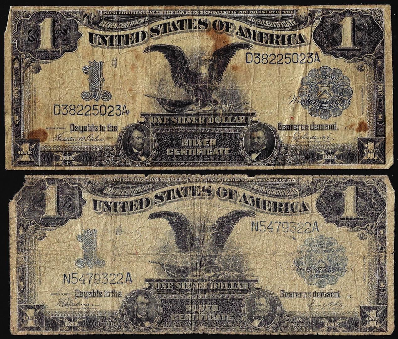 One Lot of (2) 1899 $1 Black Eagle Silver Certificate Notes.