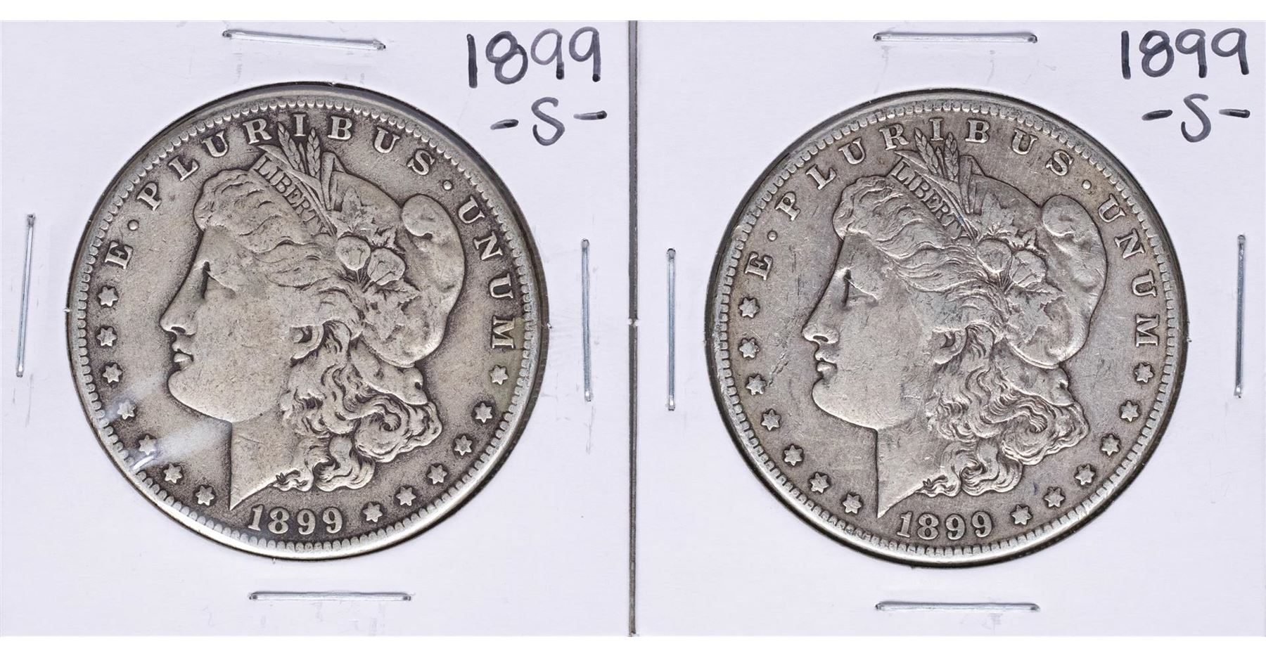One Lot of (2) 1899-S $1 Morgan Silver Dollar Coins.