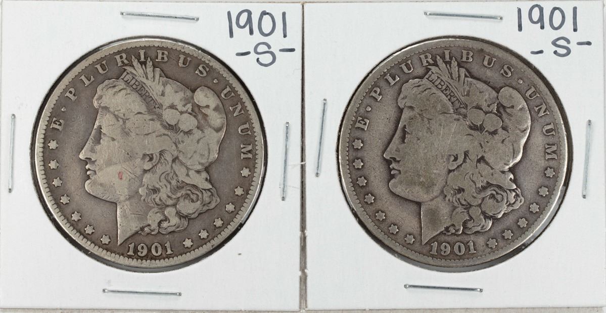 One Lot of (2) 1901-S $1 Morgan Silver Dollar Coins.