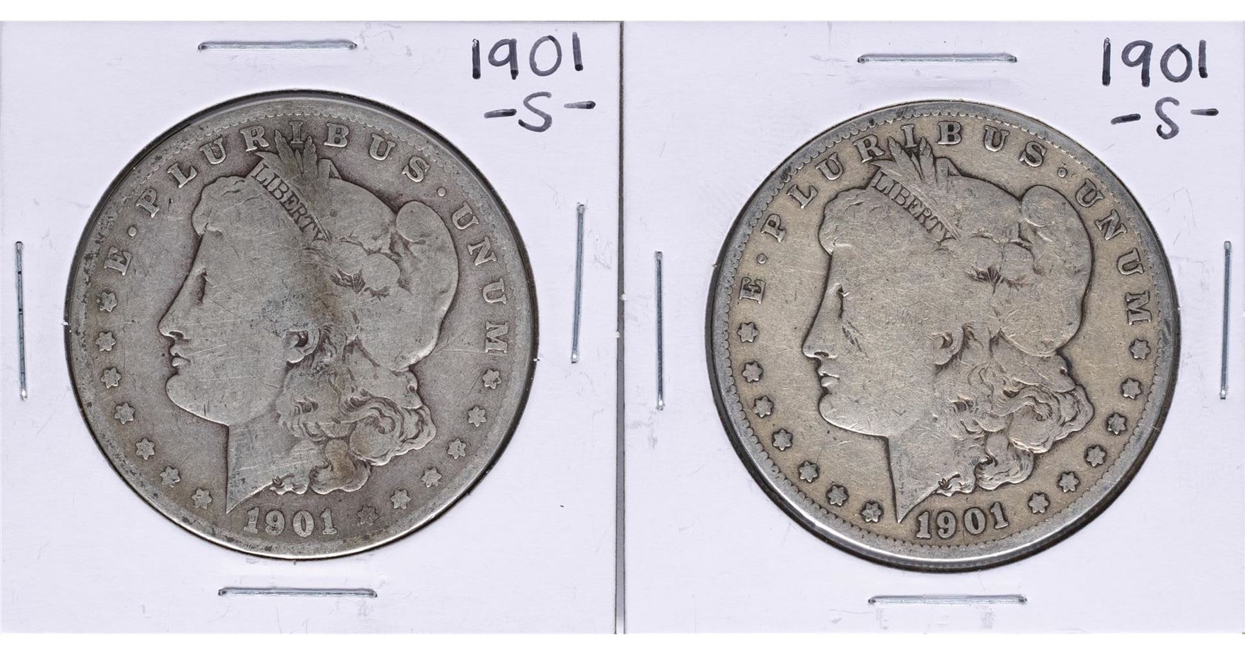 One Lot of (2) 1901-S $1 Morgan Silver Dollar Coins.