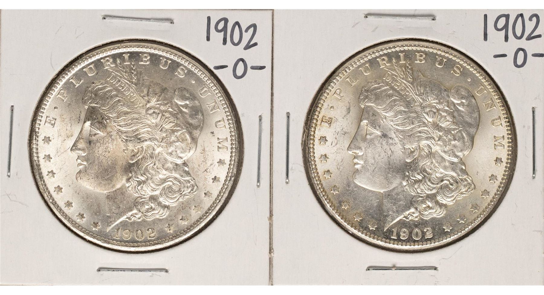 One Lot of (2) 1902-O $1 Morgan Silver Dollar Coins.