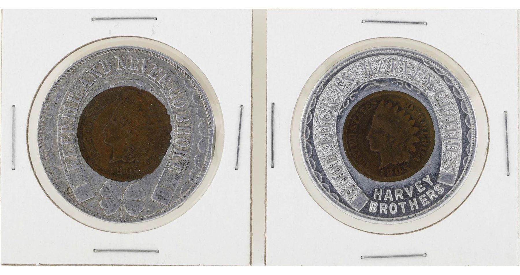 One Lot of (2) 1904-1905 Encased Indian Head Pennies.