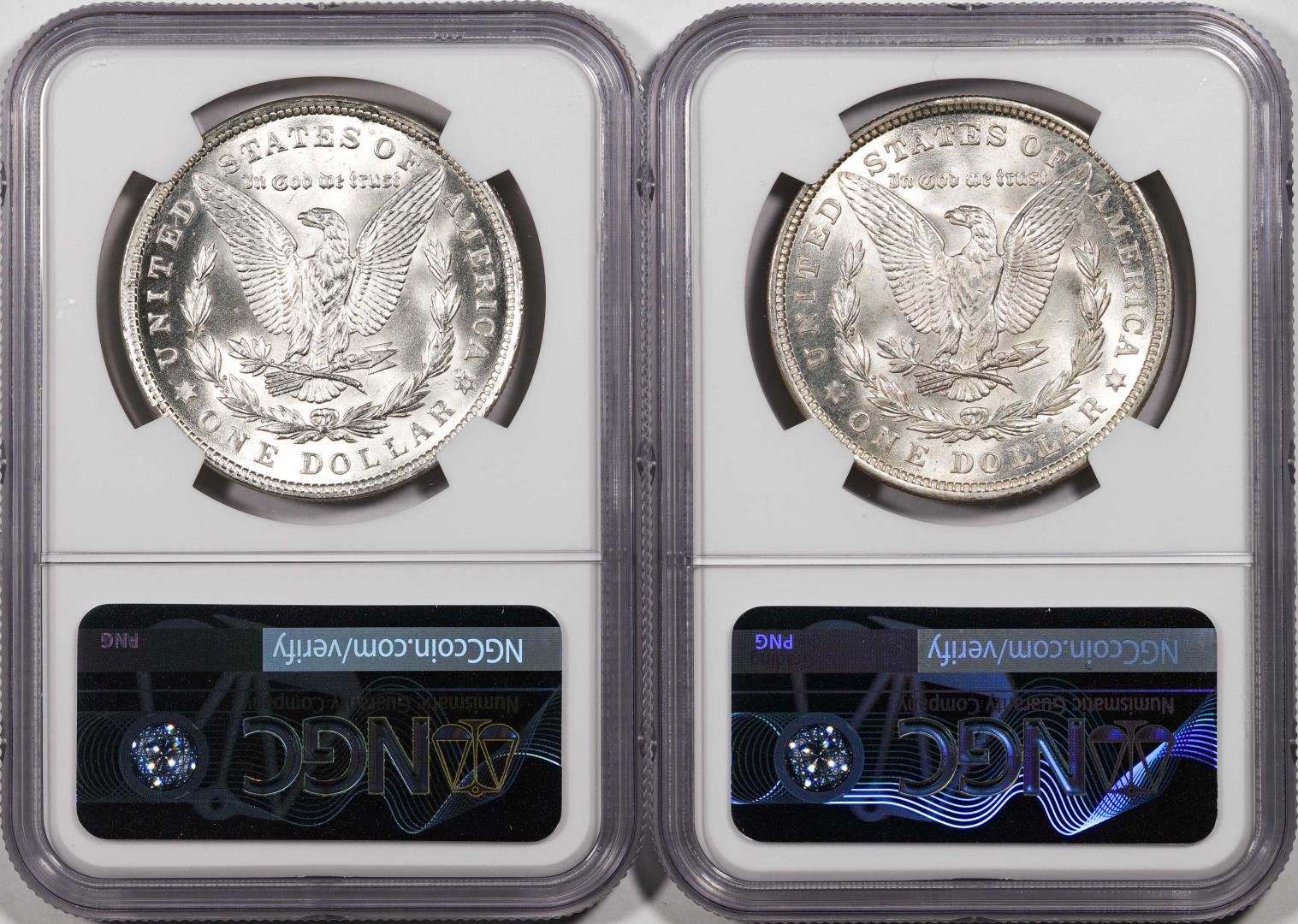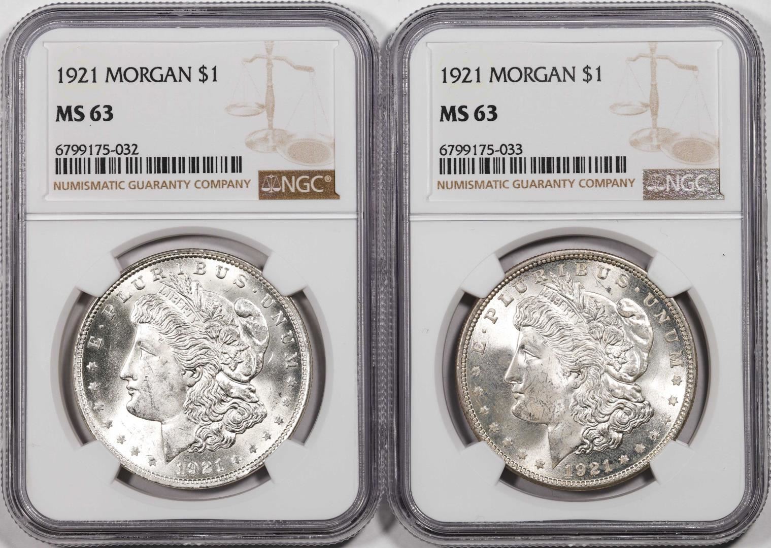 One Lot of (2) 1921 $1 Morgan Silver Dollar Coins NGC MS63. NGC Certified.