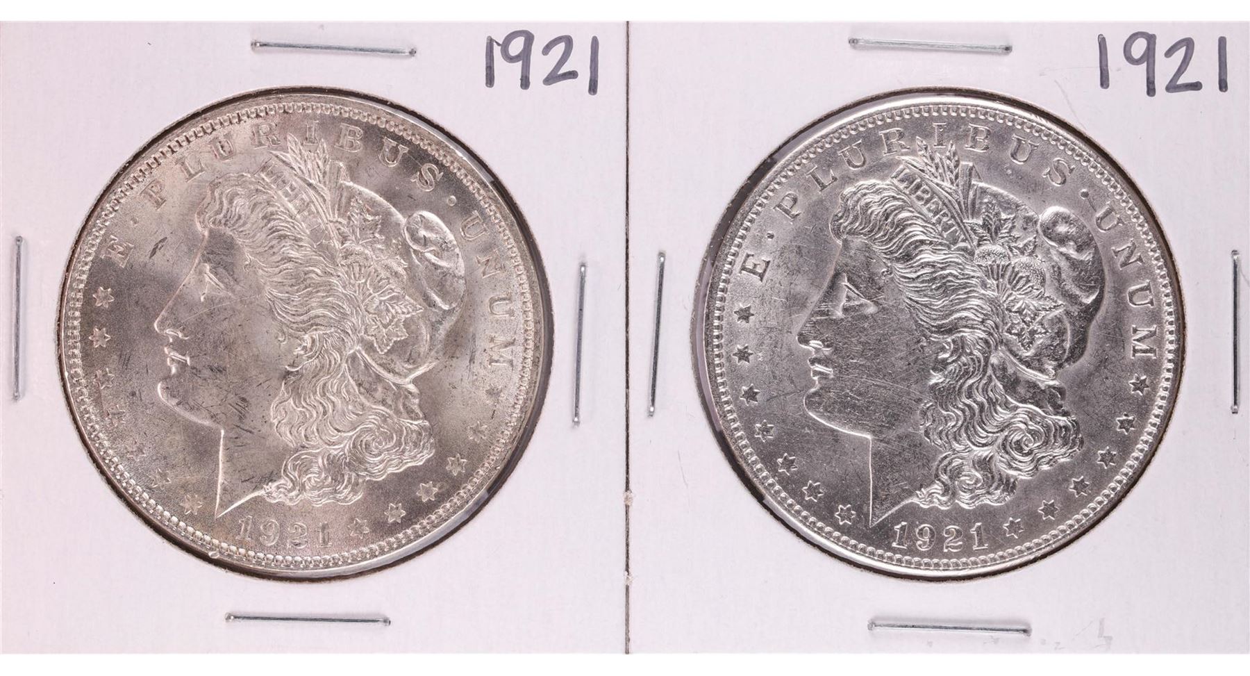 One Lot of (2) 1921 $1 Morgan Silver Dollar Coins.