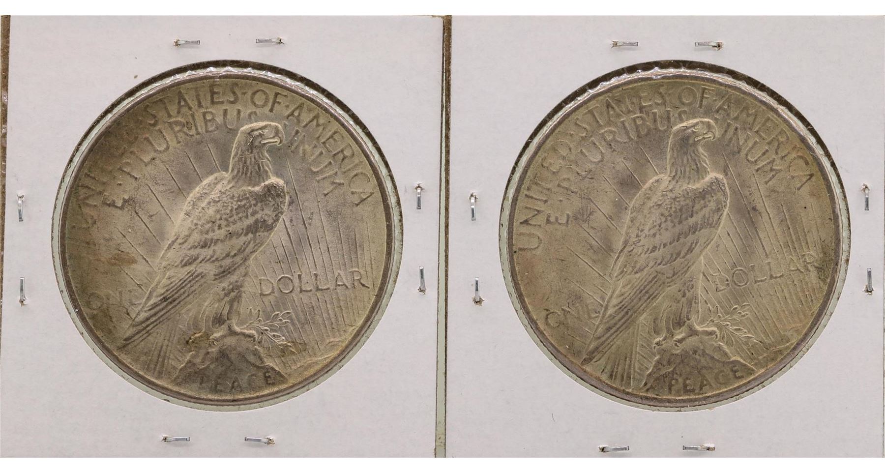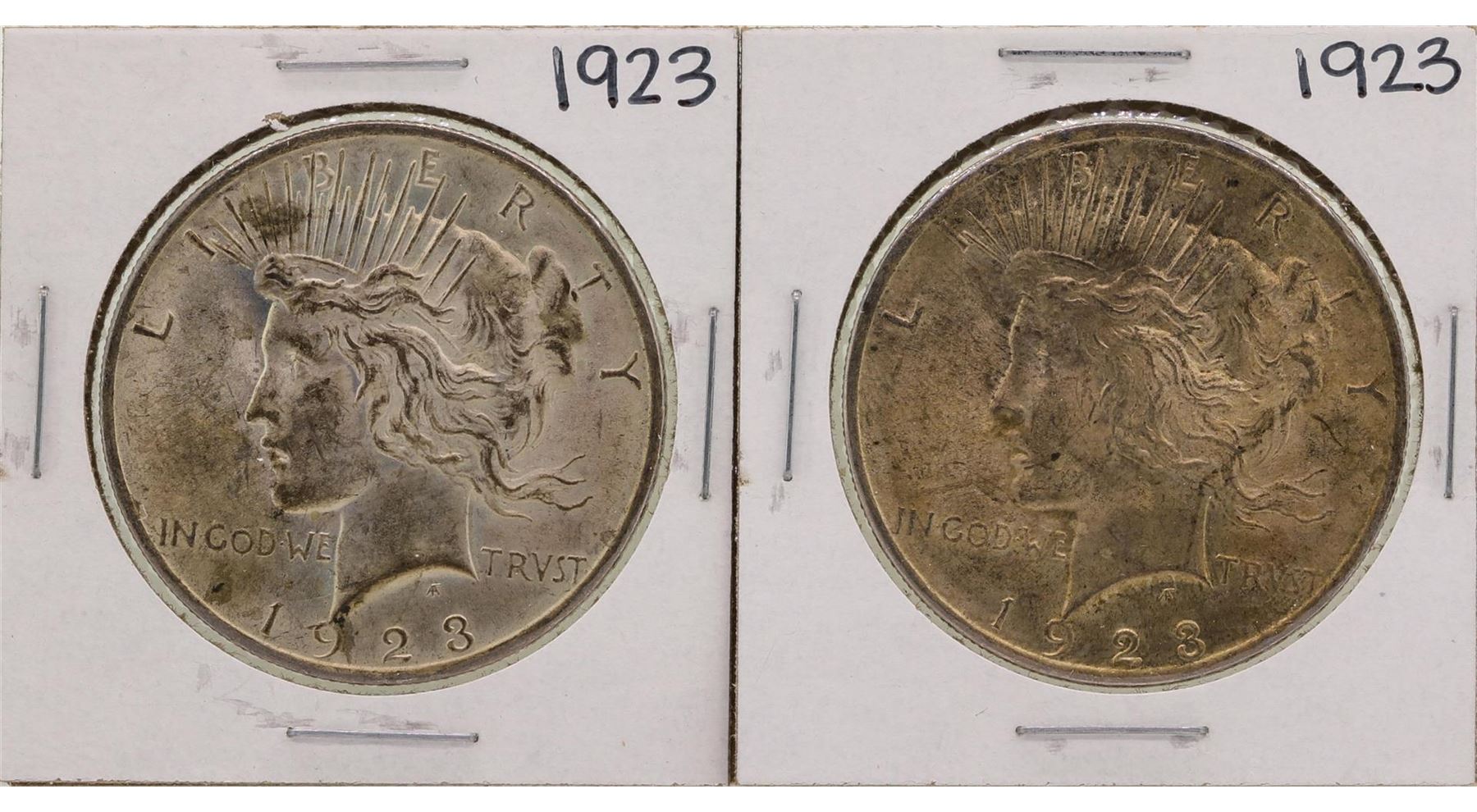 One Lot of (2) 1923 $1 Peace Silver Dollar Coins.