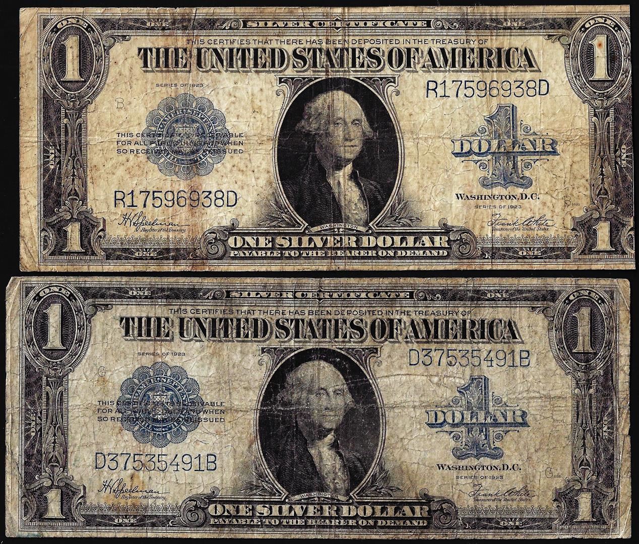 One Lot of (2) 1923 $1 Silver Certificate Notes.