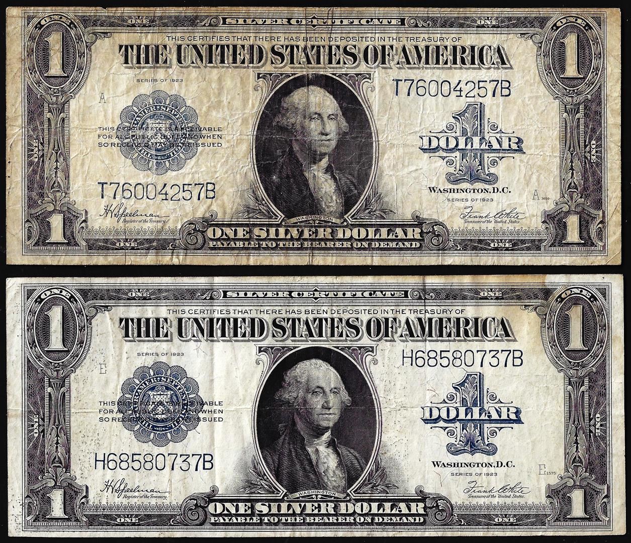 One Lot of (2) 1923 $1 Silver Certificate Notes.