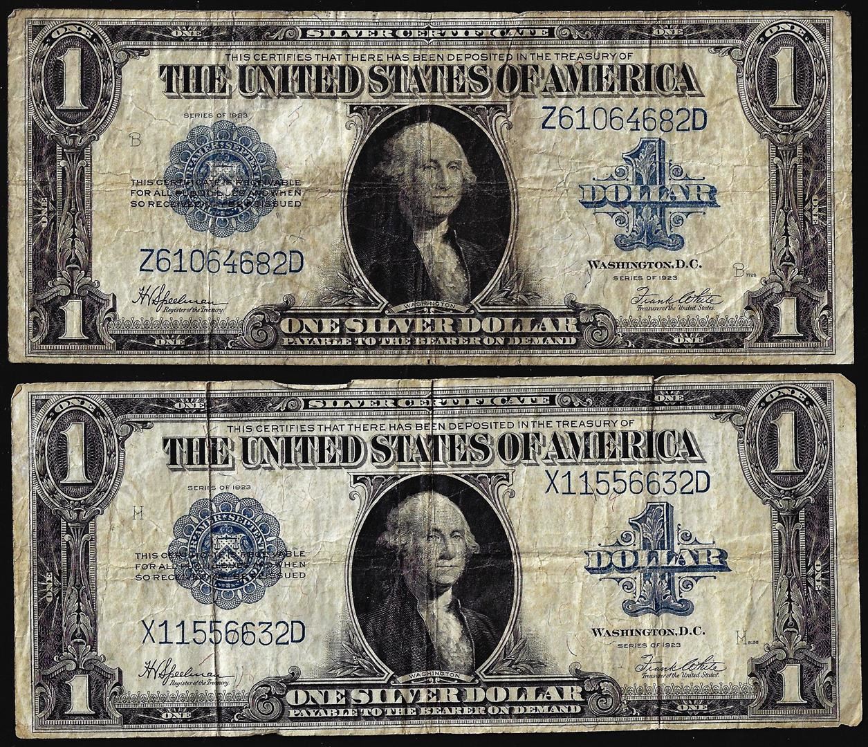 One Lot of (2) 1923 $1 Silver Certificate Notes.