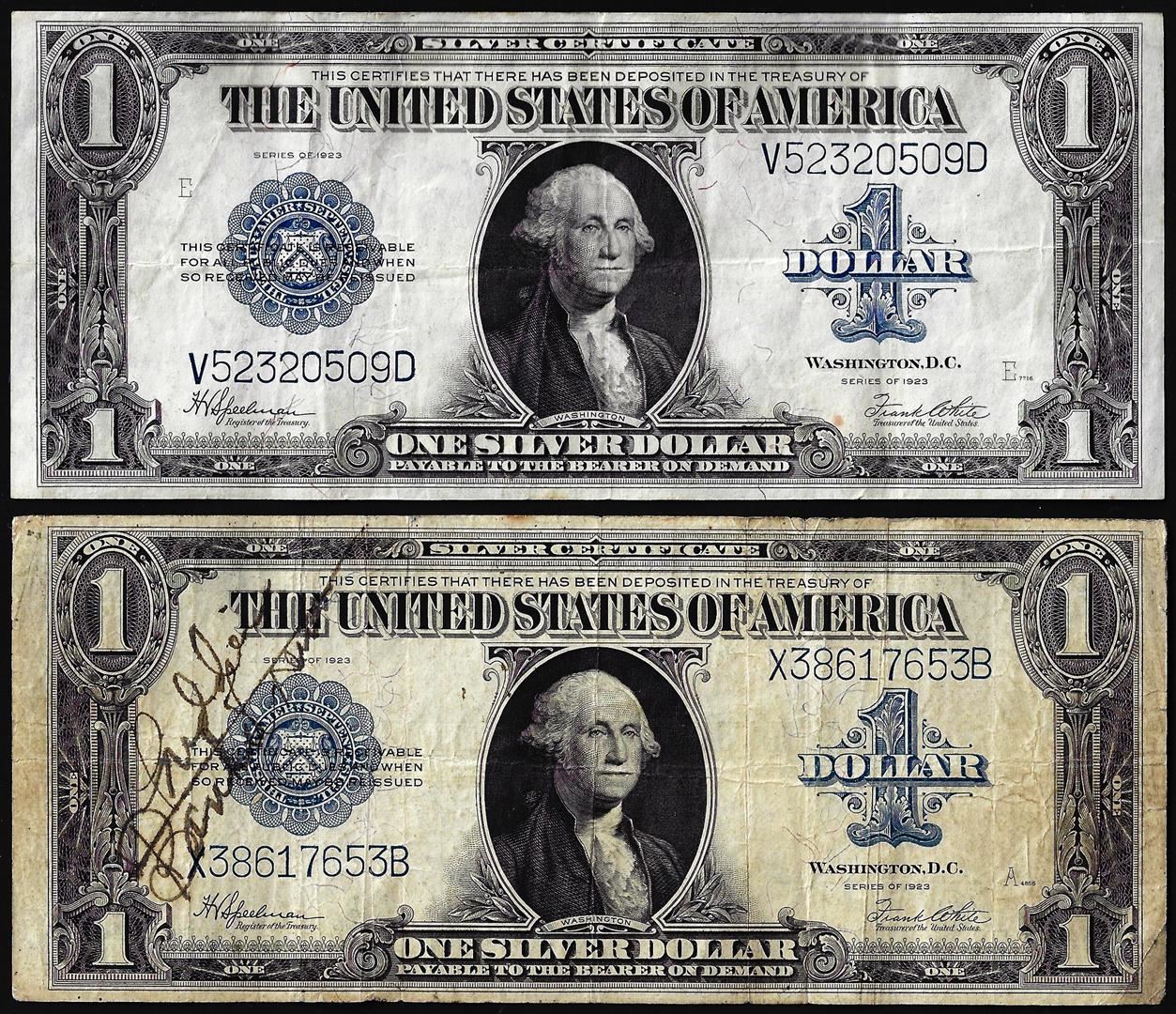 One Lot of (2) 1923 $1 Silver Certificate Notes.