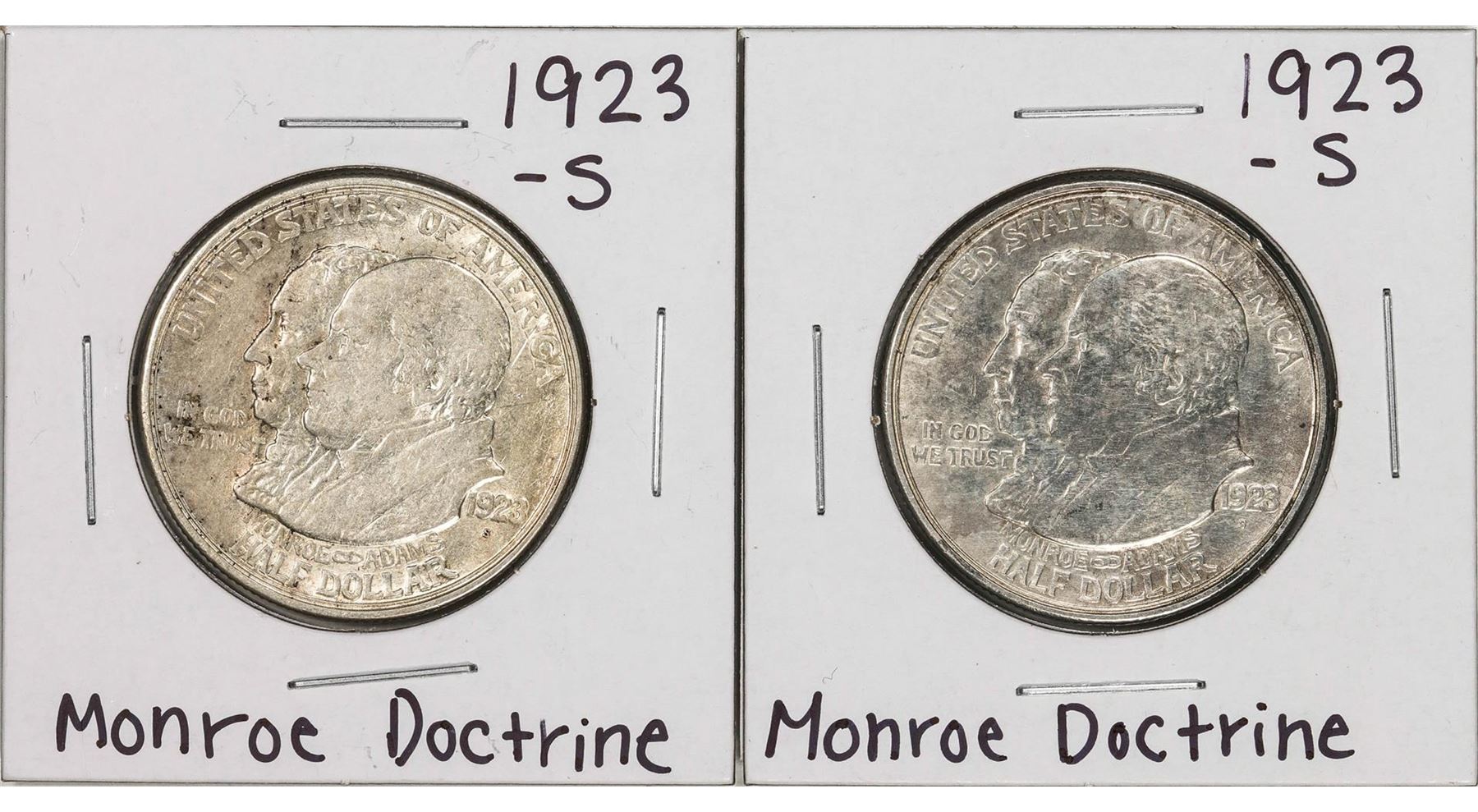 One Lot of (2) 1923-S Monroe Doctrine Centennial Commemorative Half Dollar Coins.