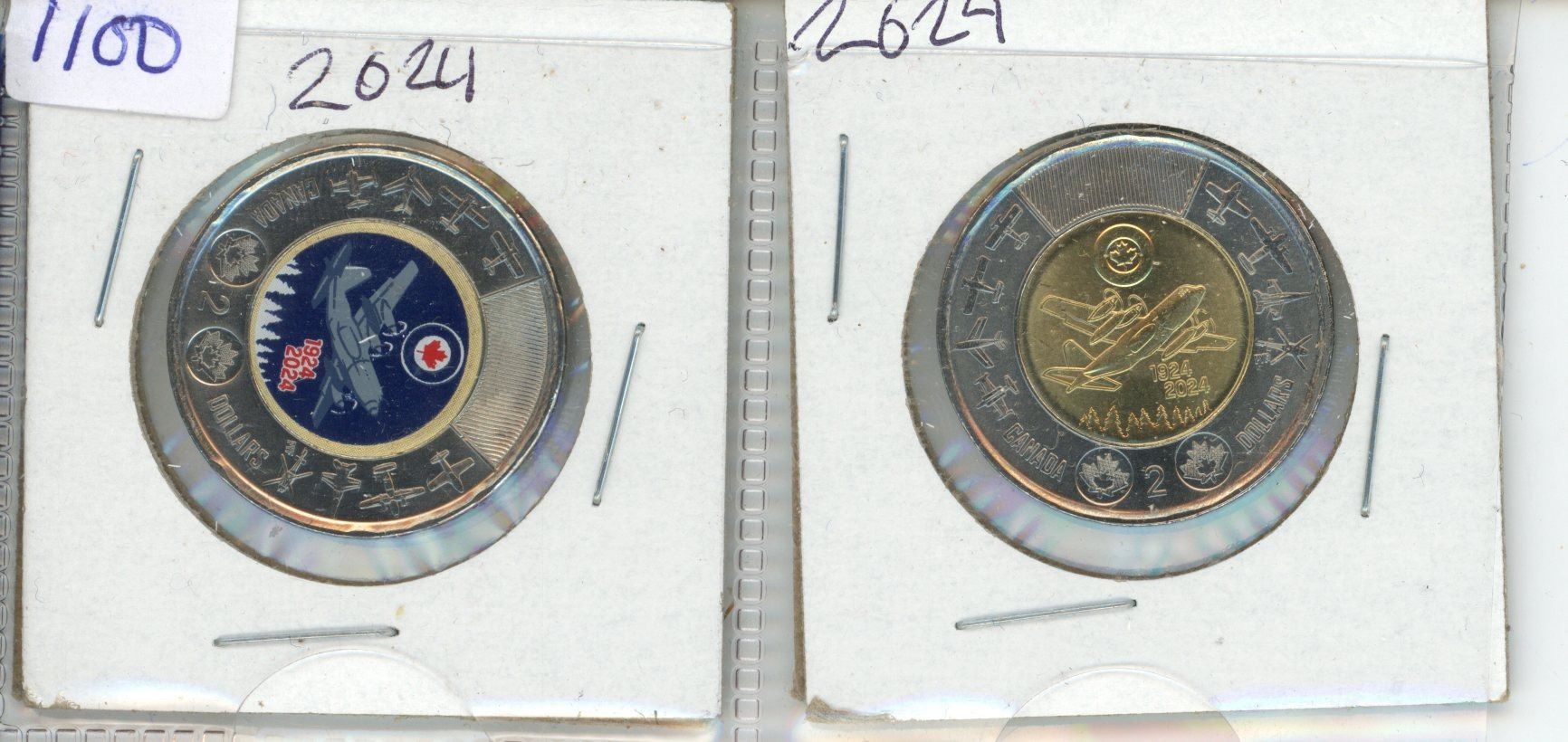 Lot of 2 (1924-2024) 100th anni. Air force coloured/non-coloured toonies