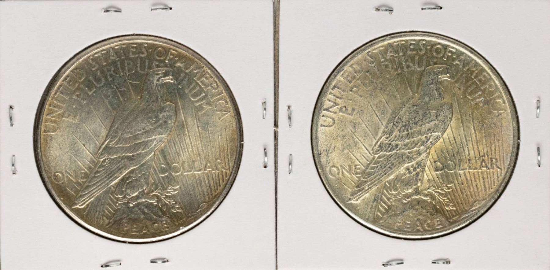One Lot of (2) 1925 $1 Peace Silver Dollar Coins.