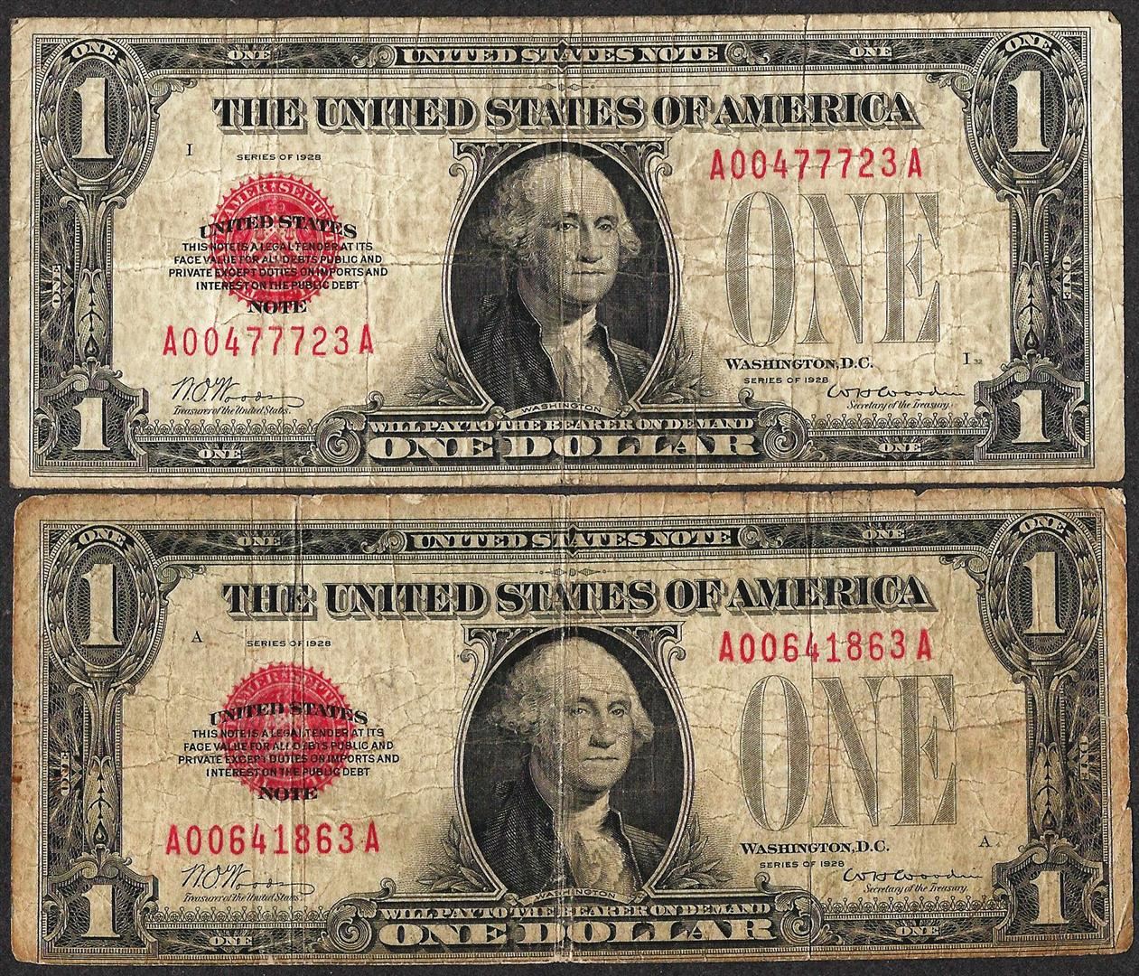 One Lot of (2) 1928 $1 Legal Tender Notes.