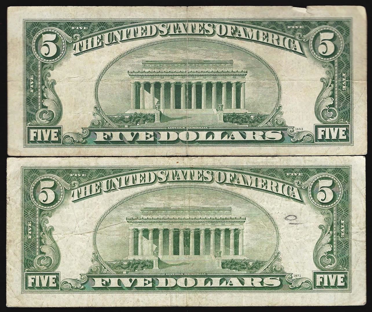 One Lot of (2) 1928 $5 Legal Tender Notes.