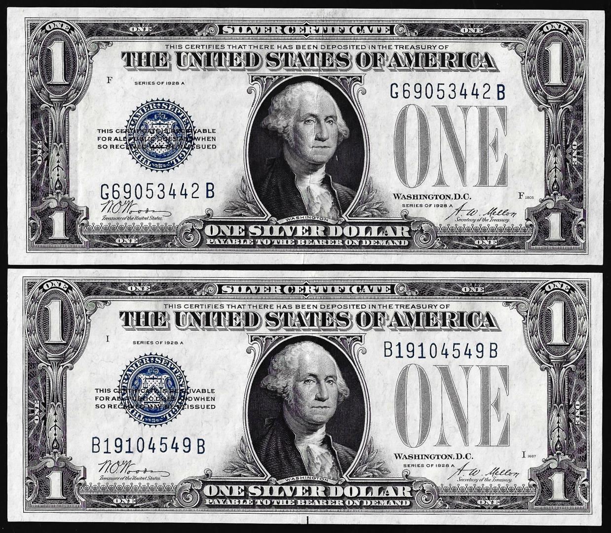 One Lot of (2) 1928A $1 Funnyback Silver Certificate Notes.