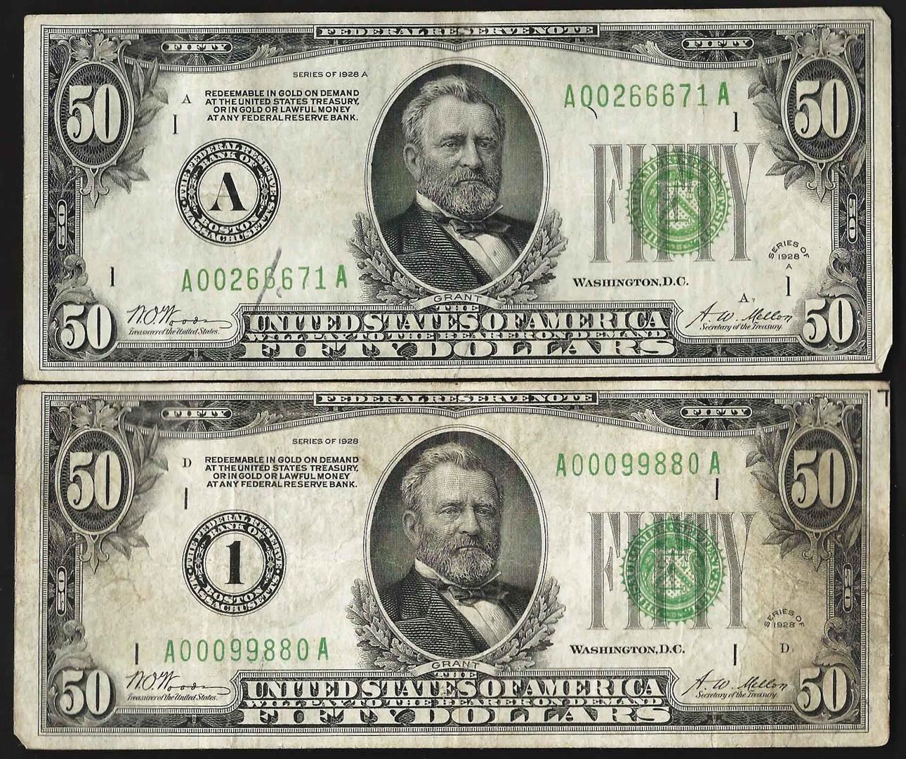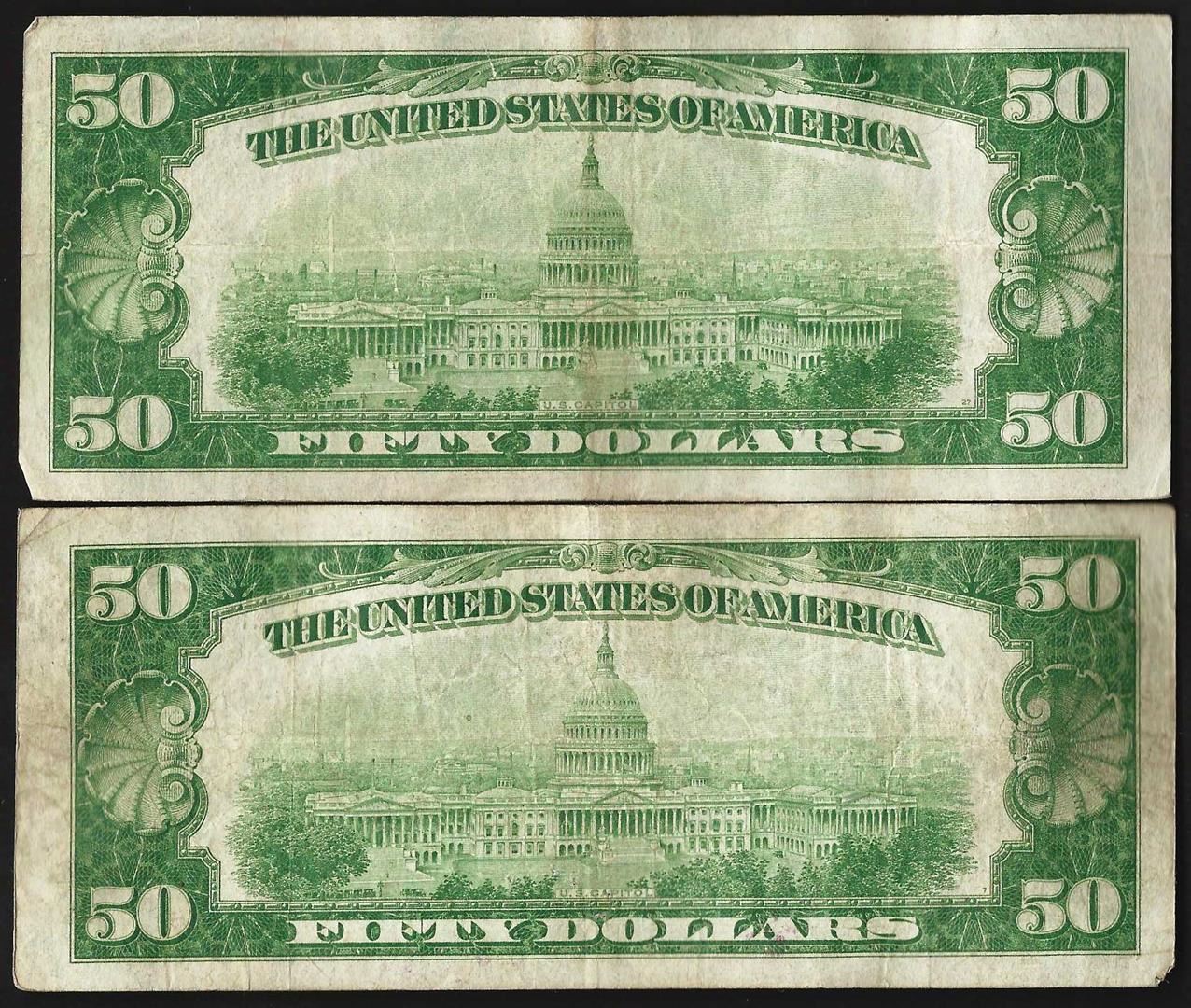 One Lot of (2) 1928A $50 Federal Reserve Notes New York.