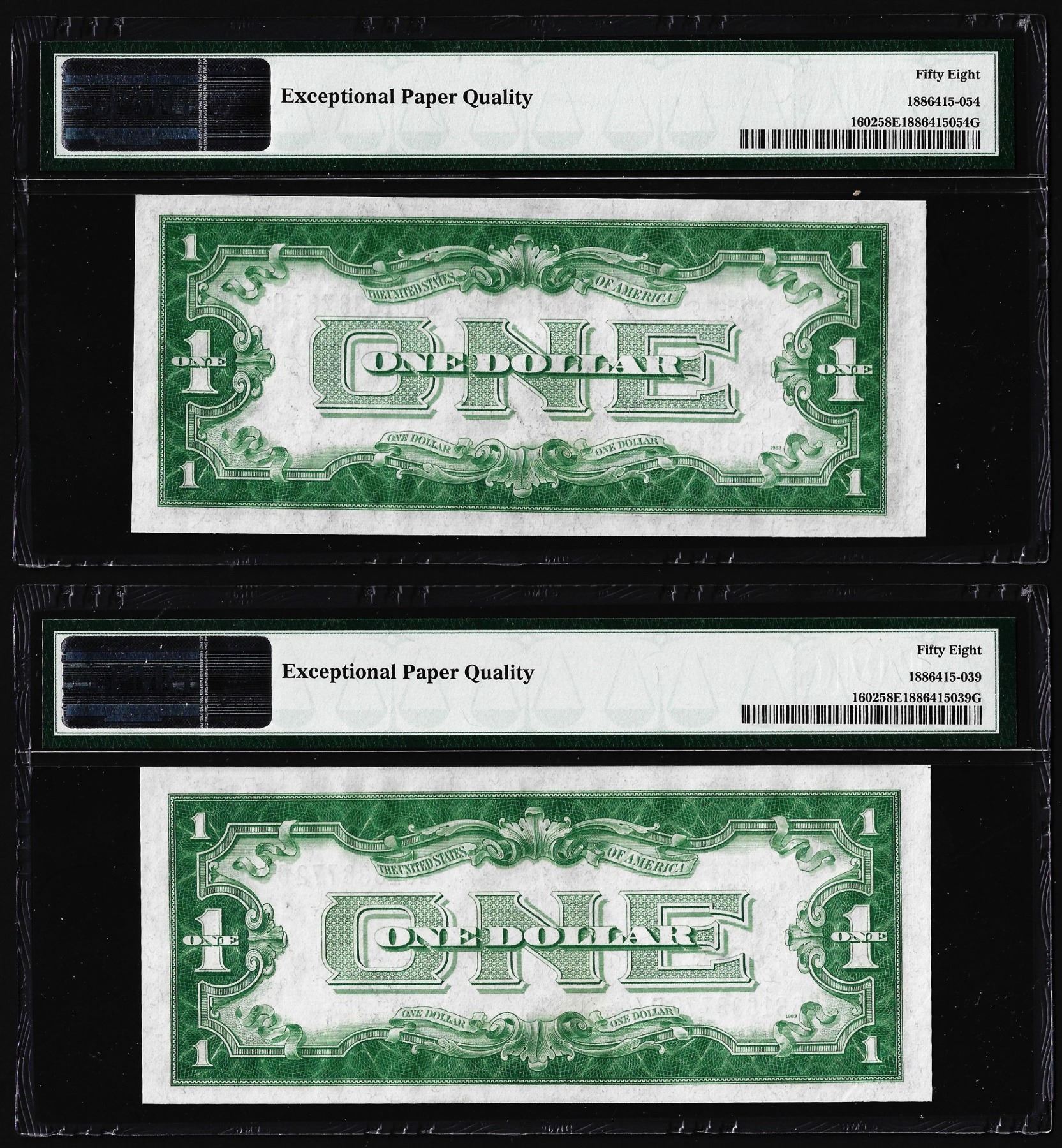 One Lot of (2) 1928B $1 Silver Certificate Notes Fr.1602 PMG About Uncirculated 58EPQ.
