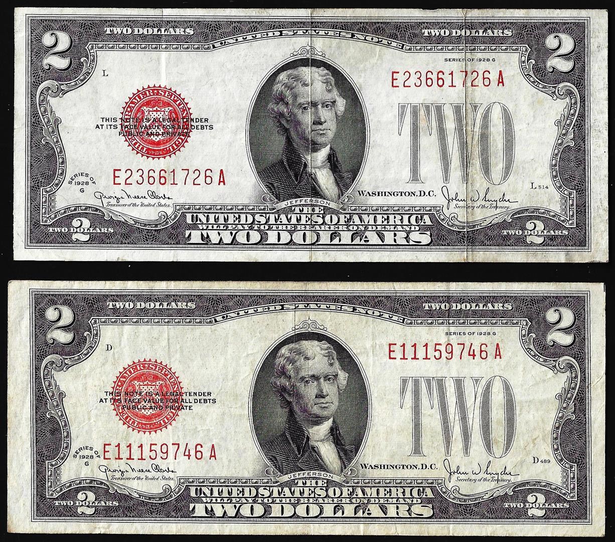 One Lot of (2) 1928G $2 Legal Tender Notes.