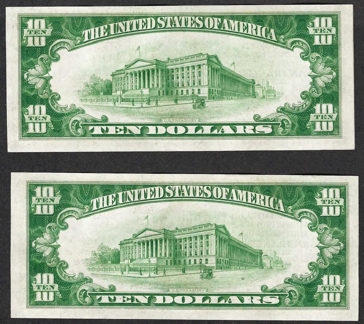 Lot of (2) 1929 $10 Bank of America San Francisco National Currency Note CH# 130