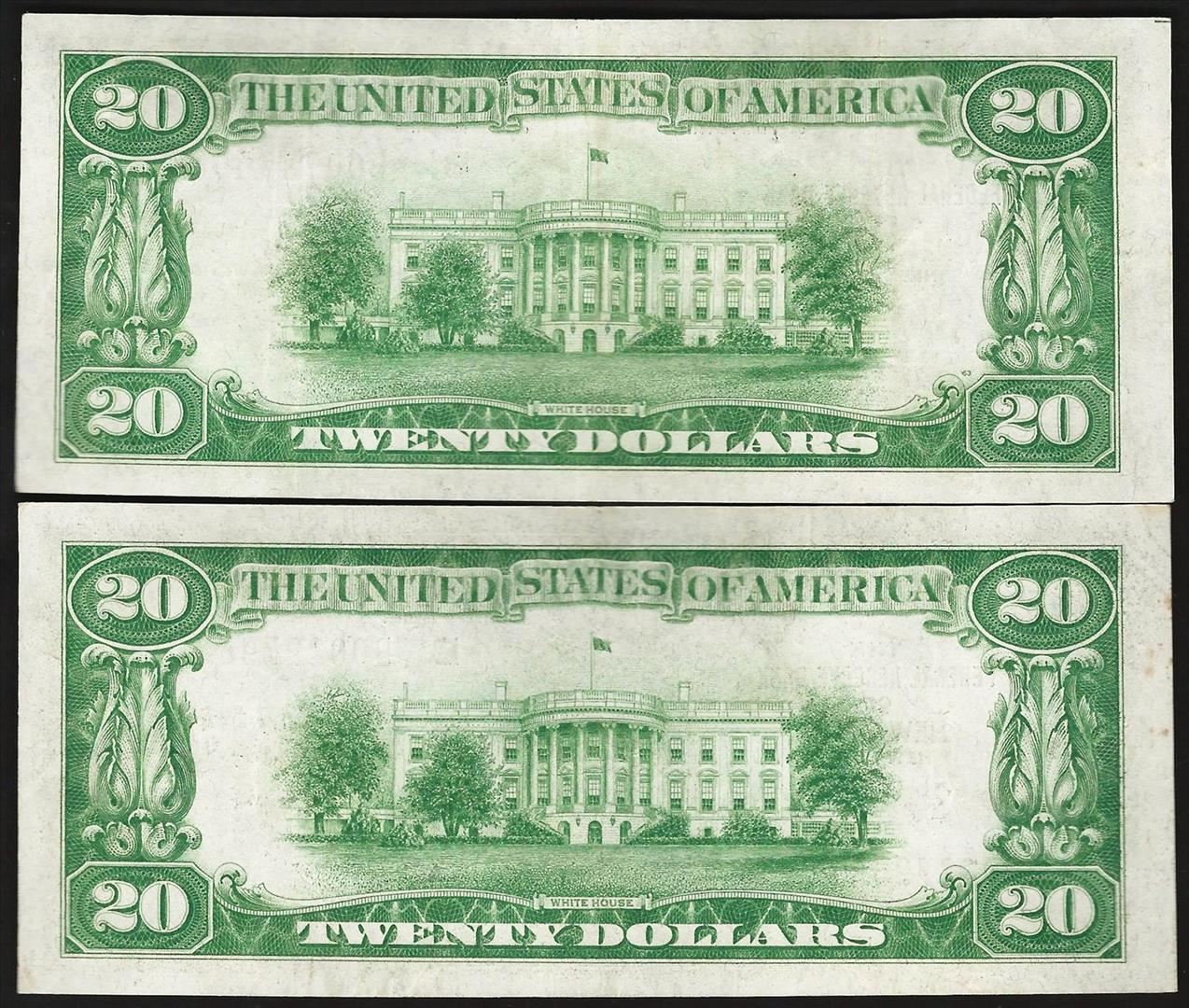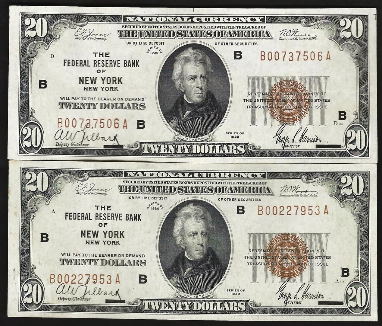 Lot of (2) 1929 $20 Federal Reserve Bank of New York National Currency Notes