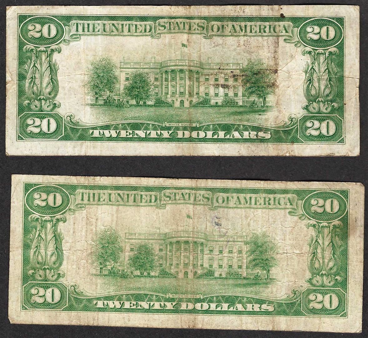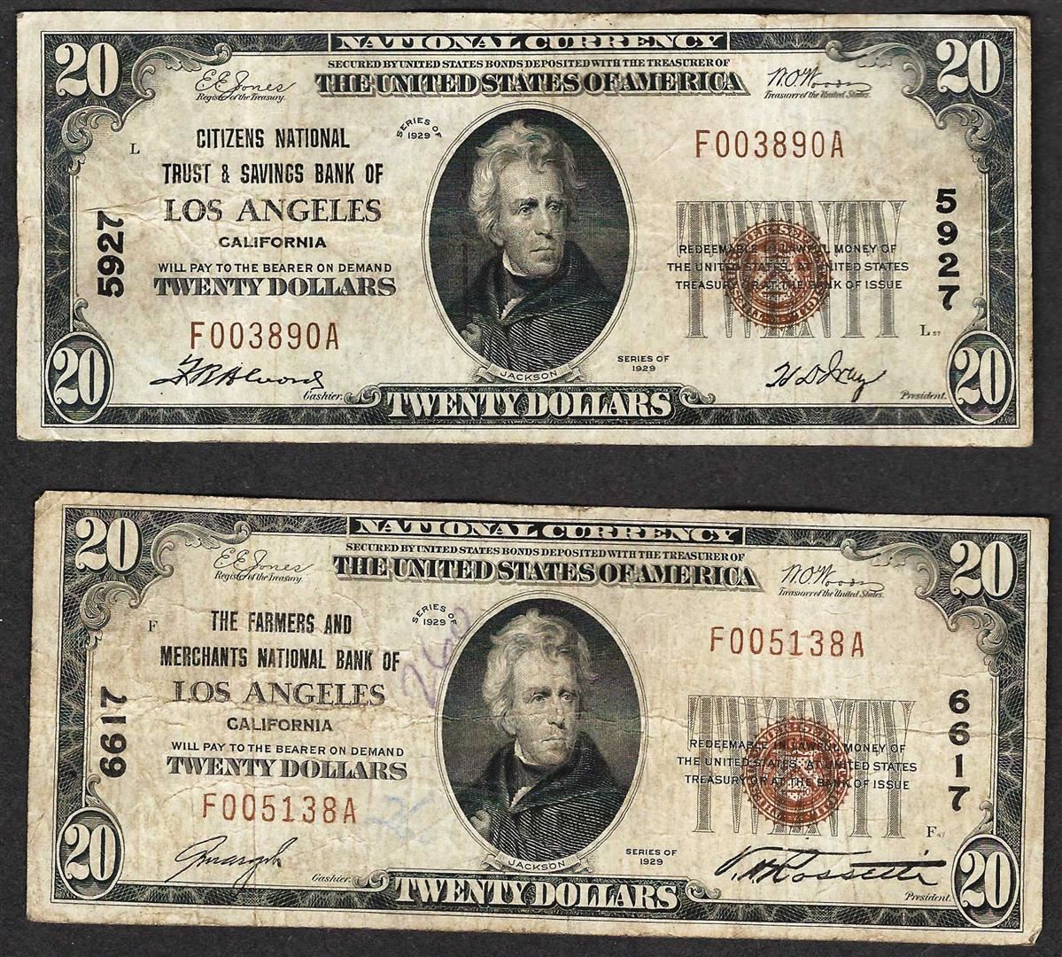 Lot of (2) 1929 $20 Los Angeles California National Currency Notes