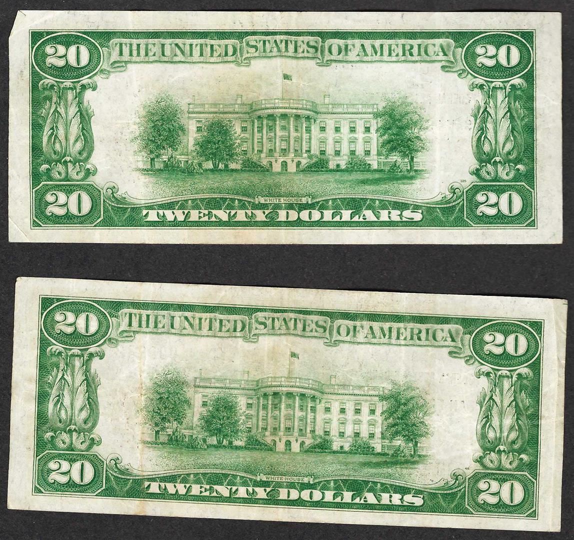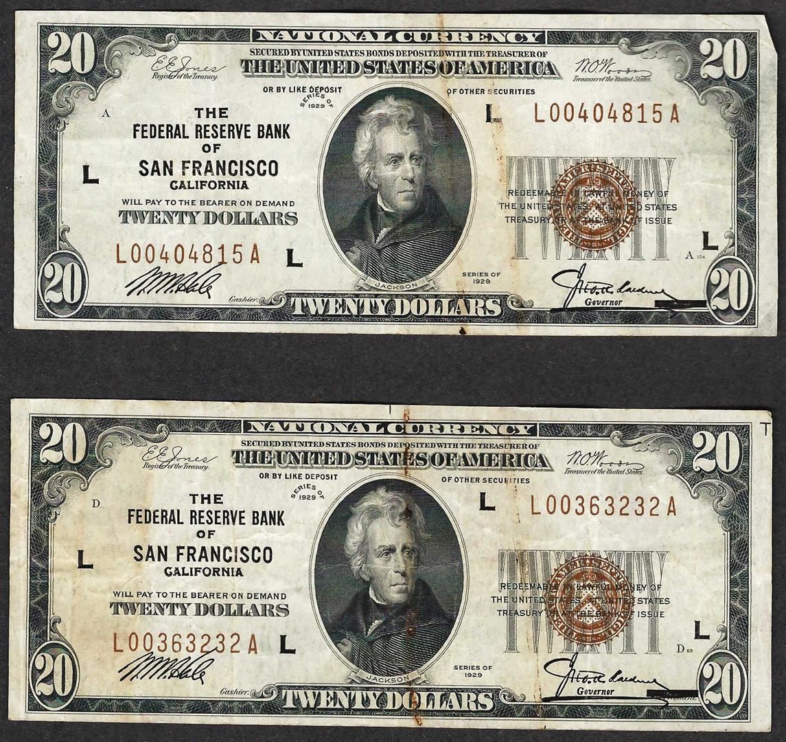 Lot of (2) 1929 $20 The Federal Reserve Bank of San Francisco Notes