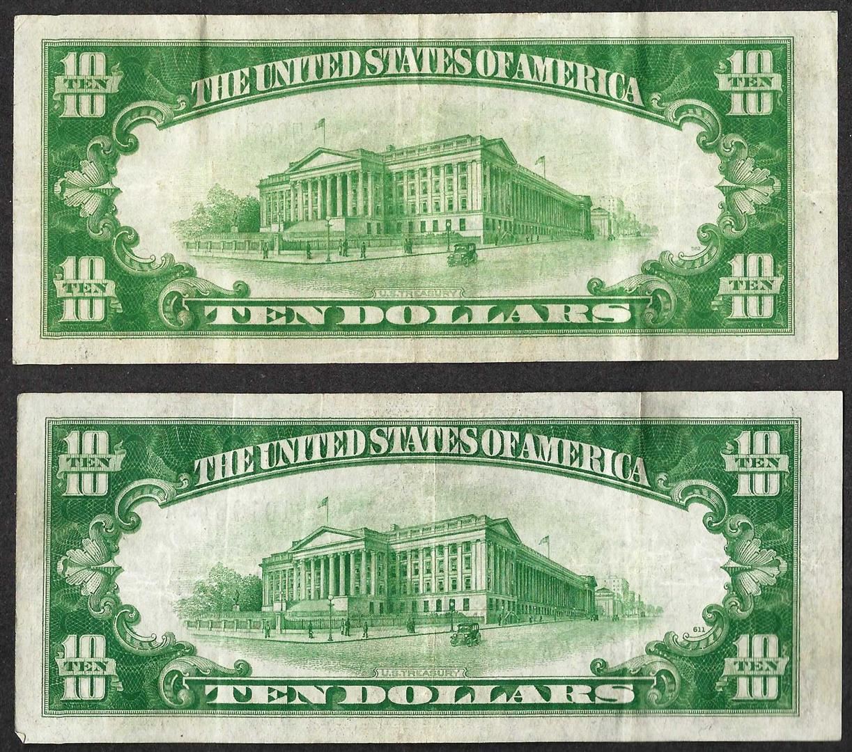 One Lot of (2) 1934 $10 Silver Certificate Notes.