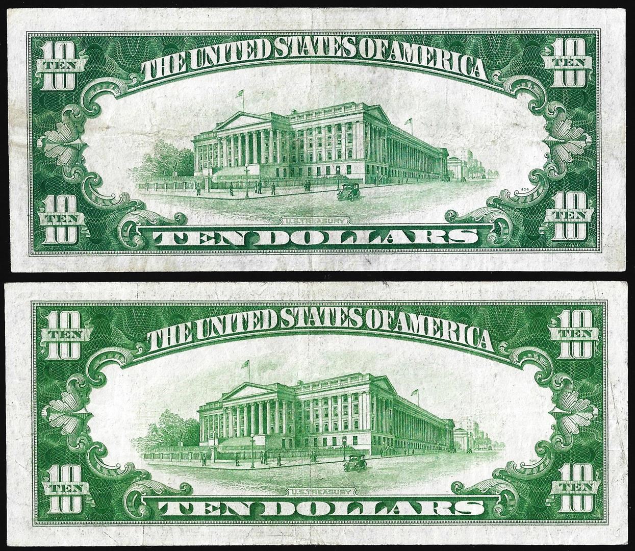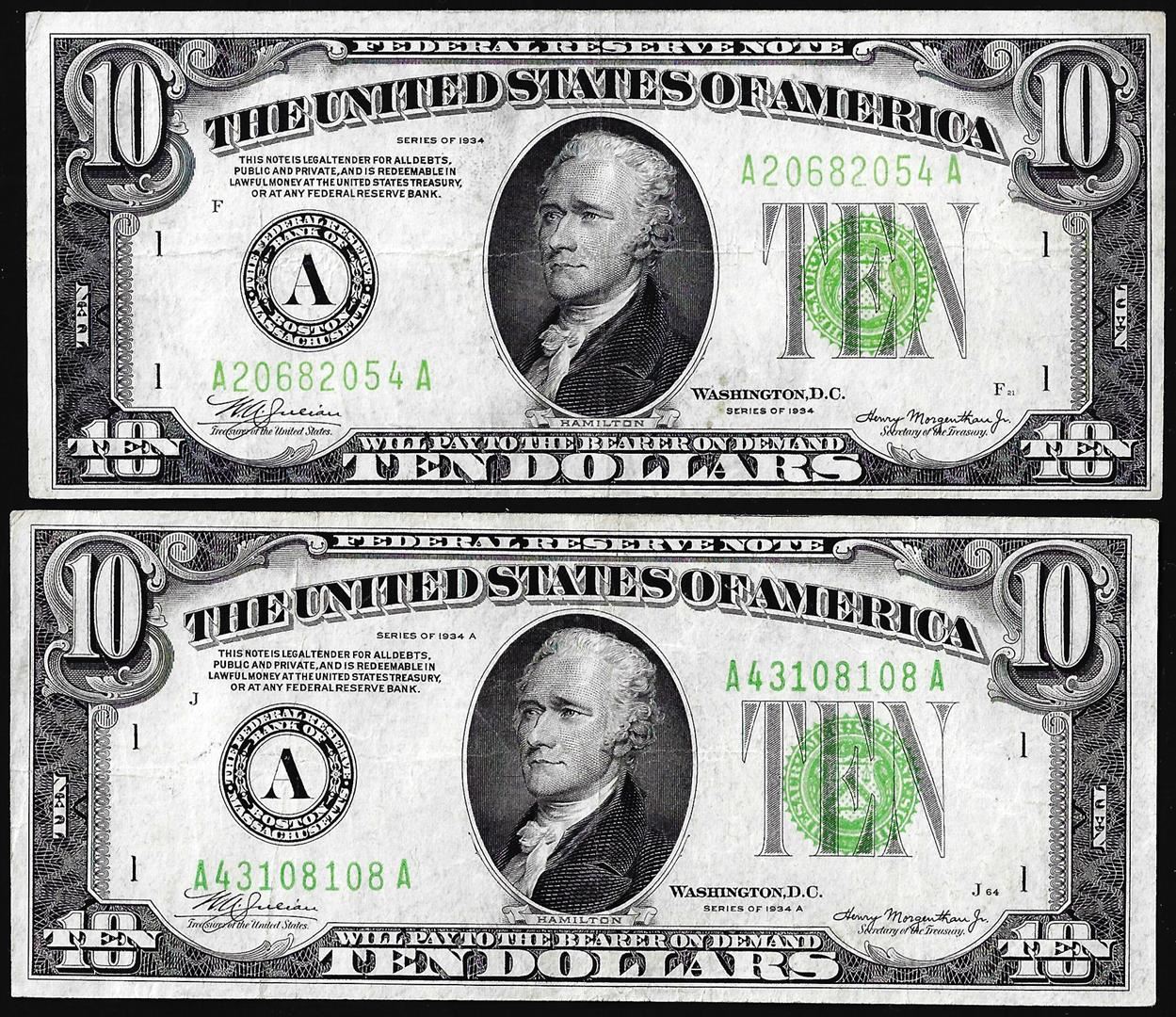 One Lot of (2) 1934 & 1934A $10 Federal Reserve Notes Boston.
