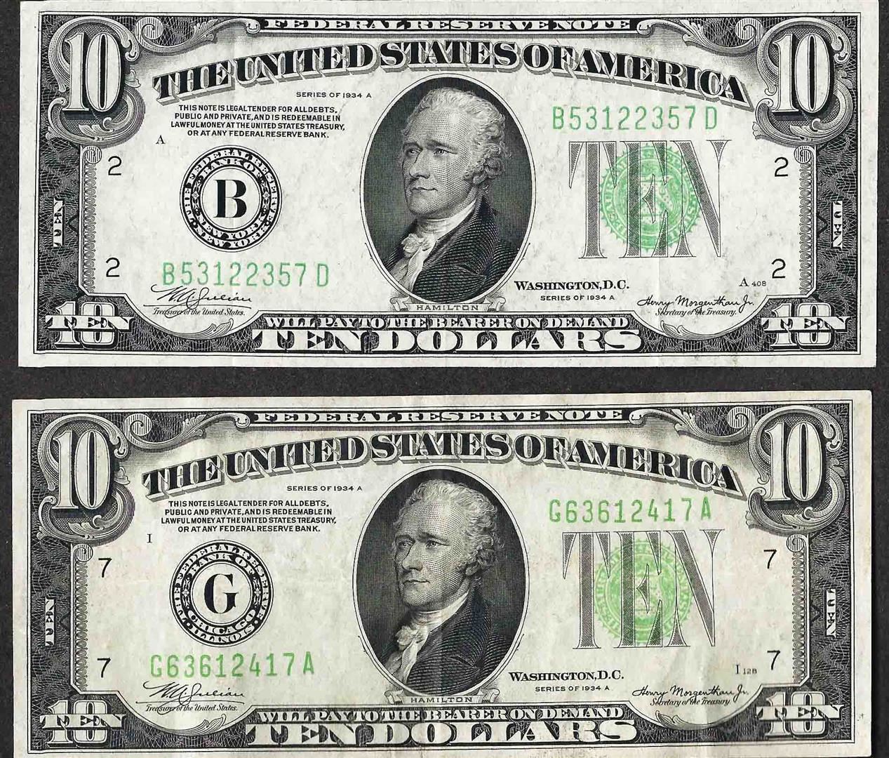 One Lot of (2) 1934A $10 Federal Reserve Notes.