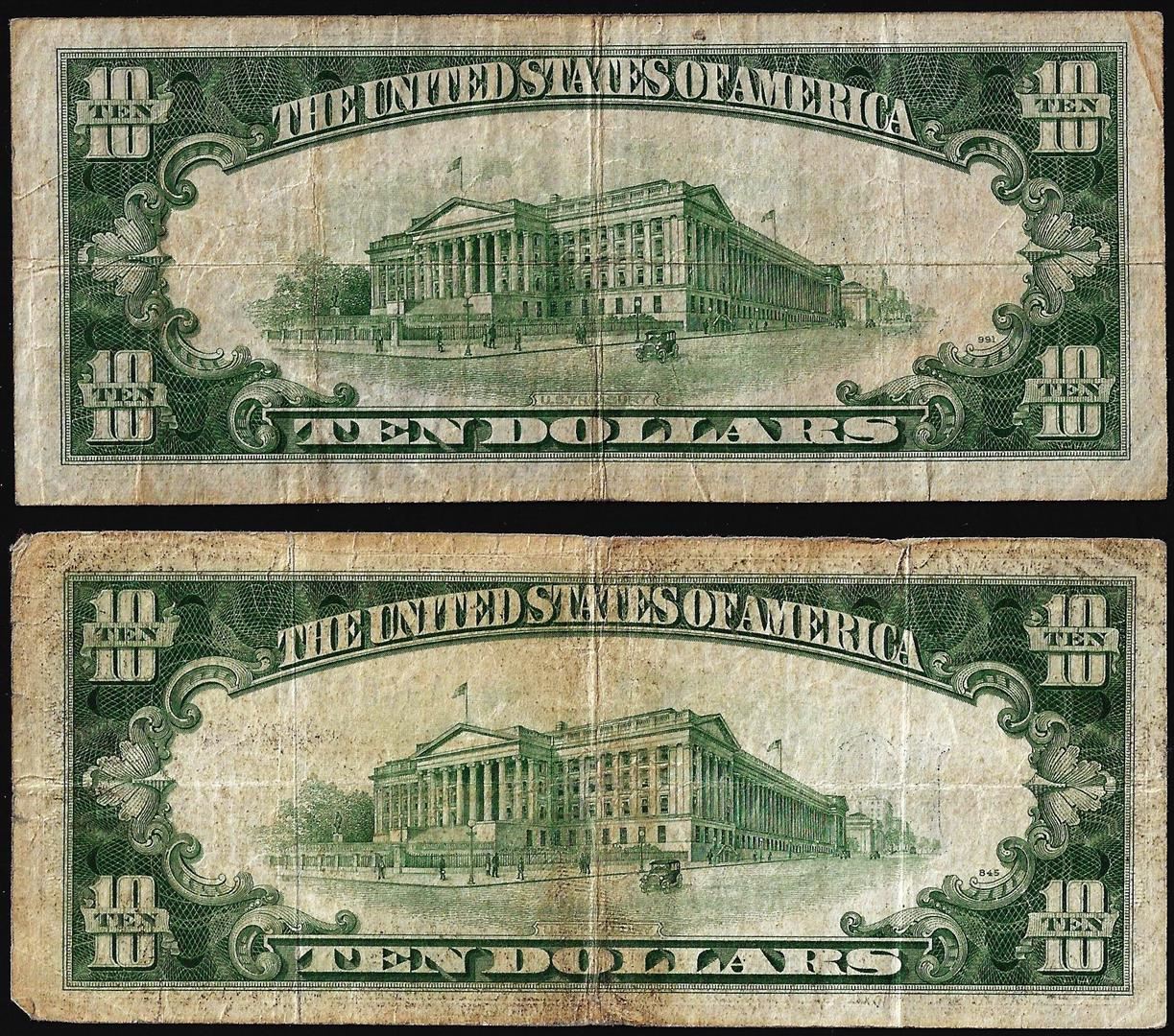 Lot of (2) 1934A $10 North Africa WWII Emergency Issue Silver Certificate Notes