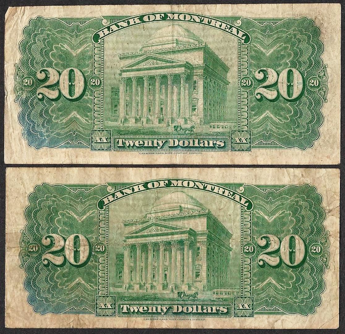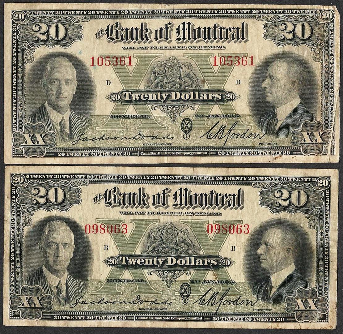 One Lot of (2) 1935 $20 The Bank of Montreal Canada Notes.